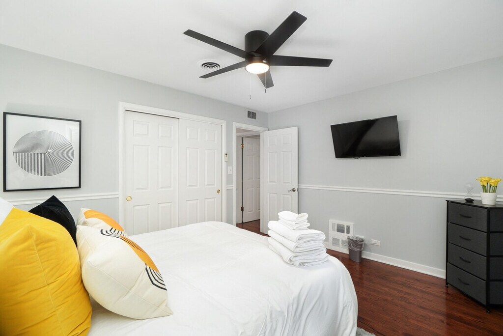 Feel at home in this renovated 2000 sq ft unit, located 20 minutes from O’Hare Airport and 18 minutes from downtown Chicago. This single-family home features 3 bedrooms and 2.5 bathrooms. This home includes a kitchen with plenty of utensils, cooking spices, and oils. For entertainment, there are 5 LCD televisions with cable access in English and Spanish, Netflix and Prime Video access (using your own login), a sound bar in the living room, and Wi-Fi throughout the entire home. There is also an arcade cabinet with 2000 classic games and a pool table. The living area has a 55" TV, and the bedrooms have 40" TVs. For the young ones, there is a pack and play sleeper, a stroller, a high chair, and a booster seat. Enjoy the convenience of a 2-car garage and street parking. The home offers on-site entertainment with playing cards and board games. If the home has a fireplace, it is not for guest use. [SI]
