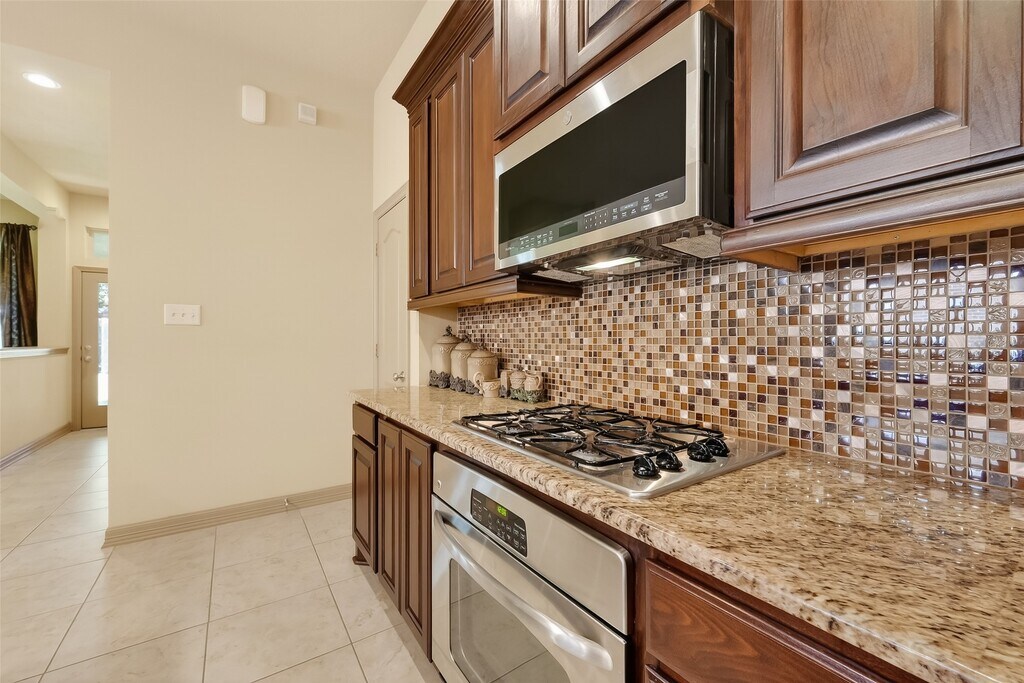 Step into this stunning brick and stone home. Inside,you'll find soaring ceilings,beautiful wood floors,and a bright,open-concept layout. A spacious study offers the ideal work-from-home setup. The expansive gourmet kitchen is a standout,complete with stainless steel appliances,beautiful cabinetry,and a center island that flows seamlessly into the breakfast area and family room,perfect for entertaining. The primary suite is a true retreat,showcasing high ceilings,a generous walk-in closet,dual vanities,a relaxing soaking tub,and a separate shower. A secondary bedroom and full bath on the main floor provide a comfortable guest suite option. Upstairs spaces have seen minimal use and feel like new. Enjoy outdoor living in the private fenced backyard with a large covered patio,ideal for gatherings year-round. This home is available for a quick move-in for the right tenant. MLS# 94954899