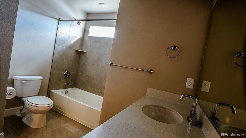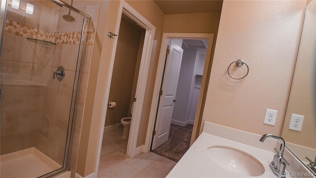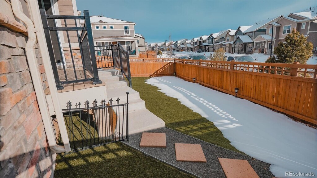 Welcome to Your Home in Castle Valley! Nestled in the desirable Castle Valley community, this beautifully designed paired home offers modern comfort, thoughtful upgrades, and a prime location. Step inside to an open-concept main level featuring a spacious kitchen, dining area, and family room perfect for entertaining or everyday living. The gourmet kitchen showcases a large quartz island, quartz countertops, and stainless steel appliances including a French door refrigerator, gas stove, microwave, and dishwasher. A walk-in pantry and ample cabinetry provide generous storage. The dining room opens to a covered private deck with stairs leading to a fenced side yard—ideal for relaxing or hosting guests. Luxury wood vinyl flooring flows throughout the main level, including the powder room, and honeycomb shades are installed on the main level, in the primary suite, and loft for added privacy and style. Upstairs, retreat to a spacious primary suite with a walk-in closet and a private bath featuring dual sinks and a standing shower. A versatile loft offers space for a media room, play area, or home office. The upper level also includes a large laundry room with a new washer and dryer, plus two additional bedrooms and a full bath with dual sinks, a tub, and a toilet. Additional highlights include an unfinished basement with egress windows, a high-efficiency HVAC system, and a passive radon mitigation system. The attached two-car garage provides convenience, and front yard landscaping is maintained by the HOA. Enjoy walkable access to top-rated schools including Montessori Charter School, American Academy, Rocky Heights Middle School, and Rock Canyon High School. You're also just minutes from shopping at The Shoppes at Castle Pines, Elk Ridge Park, Castle Pines Golf Club, Daniel’s Park, and major highways including I-25.