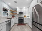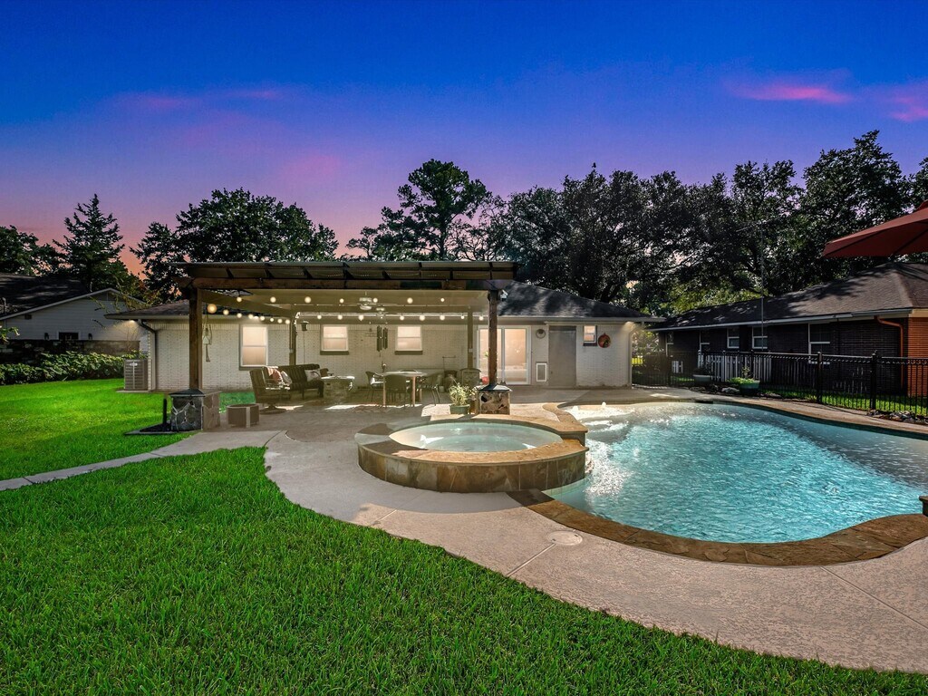 Rare Downtown Tomball luxury on an oversized lot with a resort-style pool—just steps from Main Street and the charming Austin-style restaurants,shops,and nightlife,with easy access to 249 and 99. Fully remodeled with high-end finishes from top to bottom! 5-star pool with waterfall,hot tub,tanning ledge,diving rock,and a sprawling 300+ SF covered patio. Inside,real hardwood floors,fresh paint,new wiring,new AC,tankless water heater,and modern flush-mount LED lighting set the tone. Magazine-cover kitchen with quartz countertops,new cabinetry with deep cookware drawers,a pro-style induction range,premium appliances,and a butler’s pantry/coffee bar with wine fridge and second sink. Spa-quality primary bath with a massive walk-in shower,double vanity,and custom finishes. Over ¼ acre,no rear neighbors,and gorgeous mature trees—this one is an absolute jewel - don’t miss it! MLS# 80760310