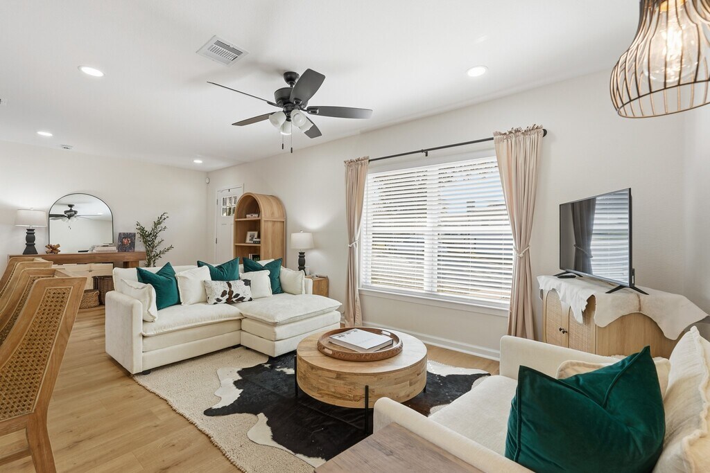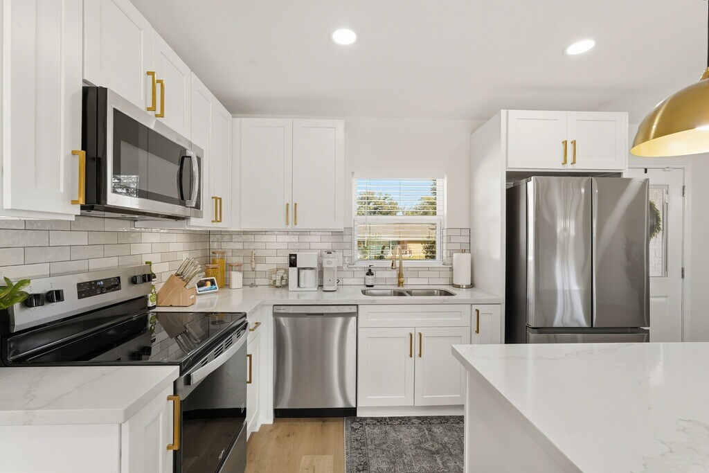 Beautifully updated and move-in ready,this home offers a bright,open layout with wood-look flooring,neutral colors,and plenty of natural light. The living room flows into the dining area and a stunning kitchen featuring quartz countertops,stainless steel appliances,brass hardware,and a large island with seating. The split-bedroom floorplan provides a private primary suite with a walk-in closet and updated ensuite. Secondary bedrooms are spacious and share a modern full bath. A dedicated laundry room adds convenience,and the home sits on a well-kept lot with great curb appeal. Every detail feels fresh,inviting,and thoughtfully designed. MLS# 63527819