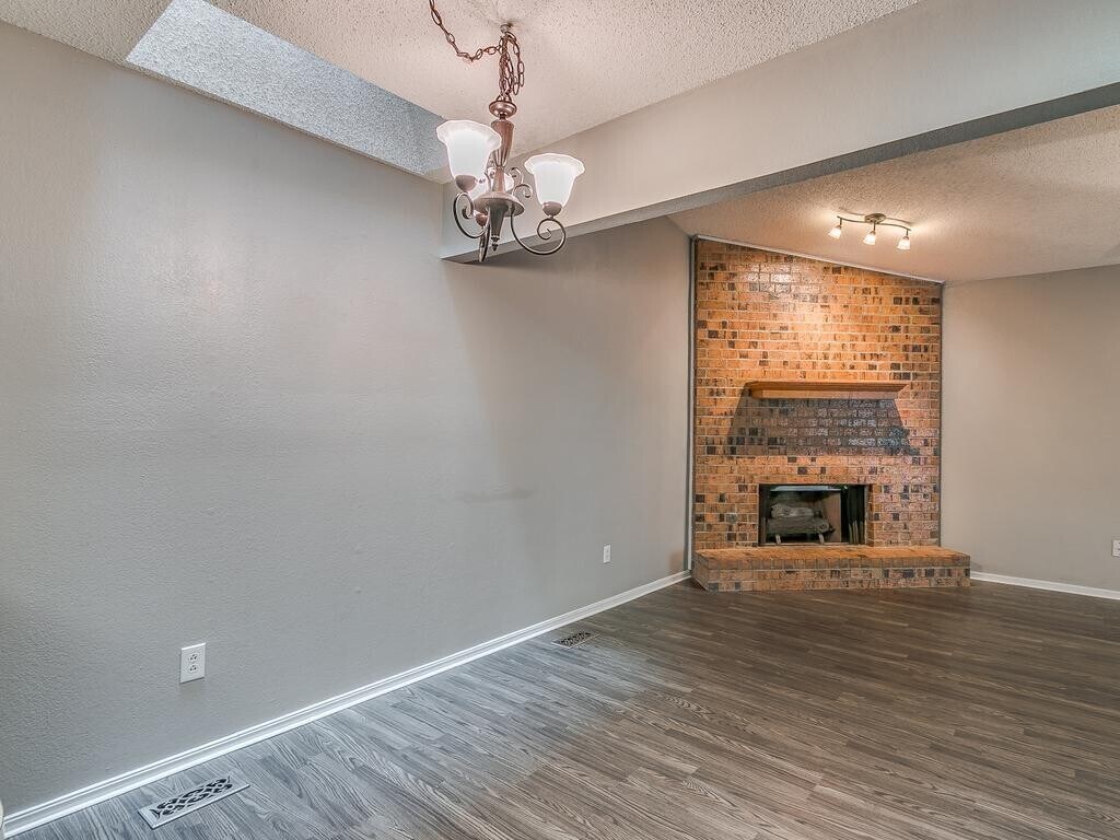 Split two bed two bath home with large walk-in closets. Excellent floor plan for a family OR college students! Spacious living room has a fireplace and very fun wet bar! Great kitchen & dining area,inside laundry,detached two car garage,and a sweet,small fenced yard. Close to the turnpike,located near Quail Springs Mall,shopping,medical services,and entertainment in the area.