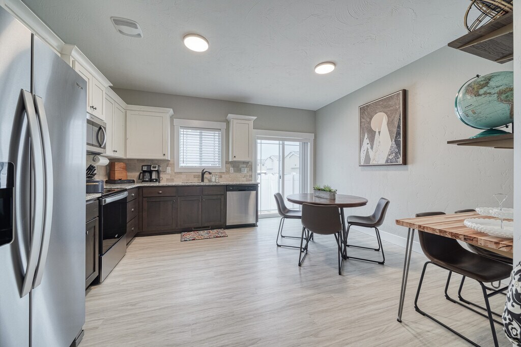 Built in 2020, this middle-unit townhome offers a spacious layout with 2 large bedrooms—each with walk-in closets—and a well-appointed kitchen featuring granite countertops, stainless steel appliances, vinyl plank flooring, and a generous pantry.The main level includes a convenient half bath and under-stair storage. Upstairs, enjoy a full bath with dual vanity and a laundry room complete with washer and dryer.Outdoor perks include a fenced patio off the kitchen, a community playground, and two adjacent parking spaces.Upgrades include central A/C, on-demand water heater, energy-efficient gas furnace, and water softener.Tenant pays: City utilities (water/sewer/garbage/electric), Intermountain Gas, Internet, and TV.HOA covers: Common area maintenance and snow removal. Dogs will be considered with pet fee.Text for 3D Tour of similar 3-bed unit: