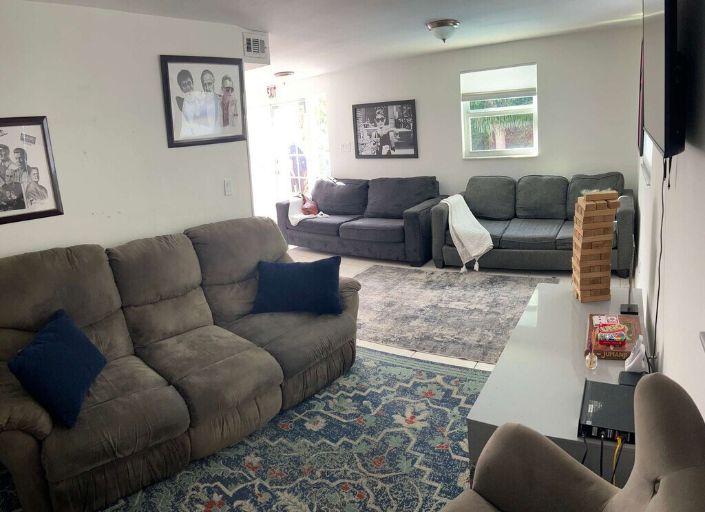 The advertised rate of $5,263/month is the lowest available price, based on a 1 month(s) stay with a move-in date of September 25, 2026. Rates vary depending on the duration of stay, season, and other parameters. For exact pricing and additional pricing components, please visit our website and enter your desired move-in and move-out dates. The rate is applicable when billed upfront; it can be higher if billed in multiple payments. Welcome to a tropical paradise in beautiful Miami, where you can spend your days lounging on the beach or strolling along the glamorous Hollywood boardwalk. This spacious villa is perfect for your next group getaway, featuring four bedrooms with Smart TVs, a heated saltwater pool, and proximity to the beach. Enjoy the grill and lounge chairs, and take advantage of the villa's location just minutes from Aventura Mall, restaurants, and shops. Step inside this modern, tropical villa and be greeted by a bright, welcoming space with open-plan living, stylish décor, and everything you need for a relaxing stay just minutes from the beach. Start your day with yoga by the fruit trees, soak up the sun on the outdoor lounge, or luxuriate in the refreshing pool. Relax on the comfortable sofas in the open living room, which doubles as a fifth sleeping area with a pull-out sofa bed. The large gourmet kitchen is fully equipped with stainless steel appliances, a coffee maker, toaster oven, and all the cookware, dinnerware, and utensils needed to cook a delicious meal for the group. Dine together in the stylish dining area with seating for eight, or explore the nearby restaurants and cafes along Hallandale Beach Boulevard. The villa offers free parking for up to two vehicles. Pool heating is available upon request for $50 per day. Complimentary amenities include a washer and dryer with detergent and a BBQ grill in the backyard. Located in the desirable Hallandale Beach, this villa offers a beautiful destination with plenty of activities and attractions. Enjoy private pool access, free WiFi, and free private parking. The villa is air-conditioned and situated 13 km from Hard Rock Stadium and 14 km from Seminole Hard Rock Hotel & Casino. Spend your days lounging on the beach, taking a dip in the ocean, or strolling along the boardwalk. Explore nearby parks like Gulfstream Park, or visit the Hard Rock Stadium for sports events. The Hollywood Beach Boardwalk, Anne Kolb Nature Center, and Everglades Holiday Park are all within easy reach. Shopping options abound with Galleria Mall, Aventura Mall, and more nearby. For dining, numerous restaurants, cafes, and bars are just a short walk away. A $3000 party fee applies for unauthorized gatherings or events. Smoking is permitted outside only. Check-in is at 3 pm and check-out is at 10 am. Early check-in is subject to availability. Quiet hours are from 10 pm to 8 am, and no outside guests or parties are allowed. The villa includes a Roku HD Smart TV, central A/C, and heaters. Access is provided via a pin code for flexible check-in times. The villa includes a workspace in Bedroom One, equipped with a desk and chair for those who need to work from home. WiFi is available throughout the property, ensuring a reliable connection for remote work. [SI]