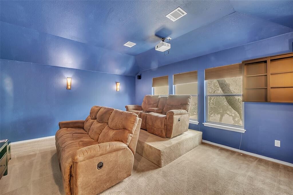 Come check out this well-kept home with a furnished media room, oh yeah, you read that right! As soon as you walk into this home you are greeted with space for everyone. A bonus flex space sandwiched between the two secondary bedrooms and bathroom towards the front of the home could be used for a plethora of things such as an office, workout space, playroom or whatever your imagination come up with. Walking further into the home you will find an immaculate kitchen with stainless steel appliances and a generous pantry. The kitchen is open to the dining room and living room leaving all the space you could need to entertain. Off of the living room are door to the half-bath to share and the primary suite for privacy. The primary suite has large windows allowing natural light, a beautiful ensuite bathroom with a separate shower and tub, and large walk-in closet. Upstairs a media room with plush couches, a projector and a screen are ready for the ultimate movie or game night. The fun doesn't stop there. Out back is an extended patio that is partially covered, a shed to store your yard tools, a covered grilling station and still plenty of yard for activities. Contact your agent today to tour this gem before it is gone!