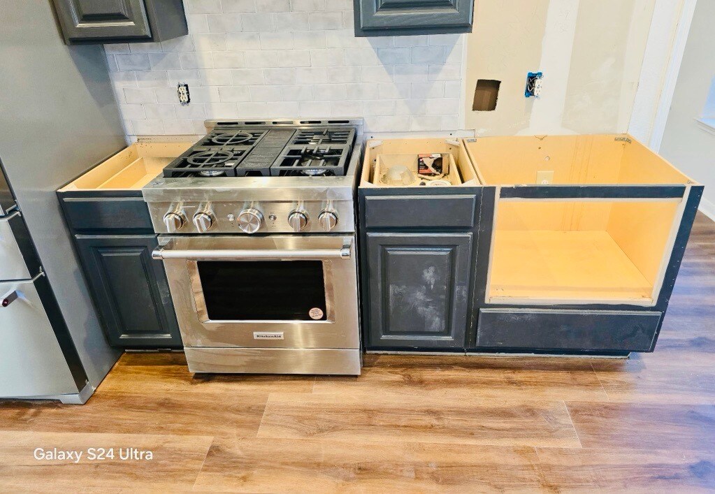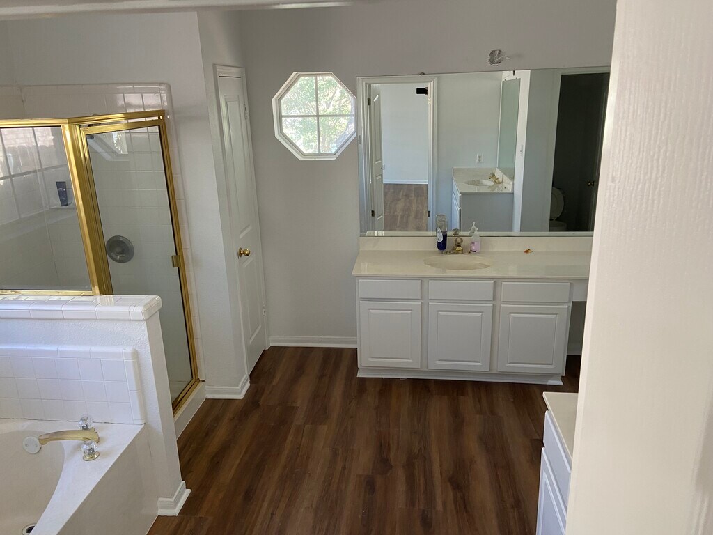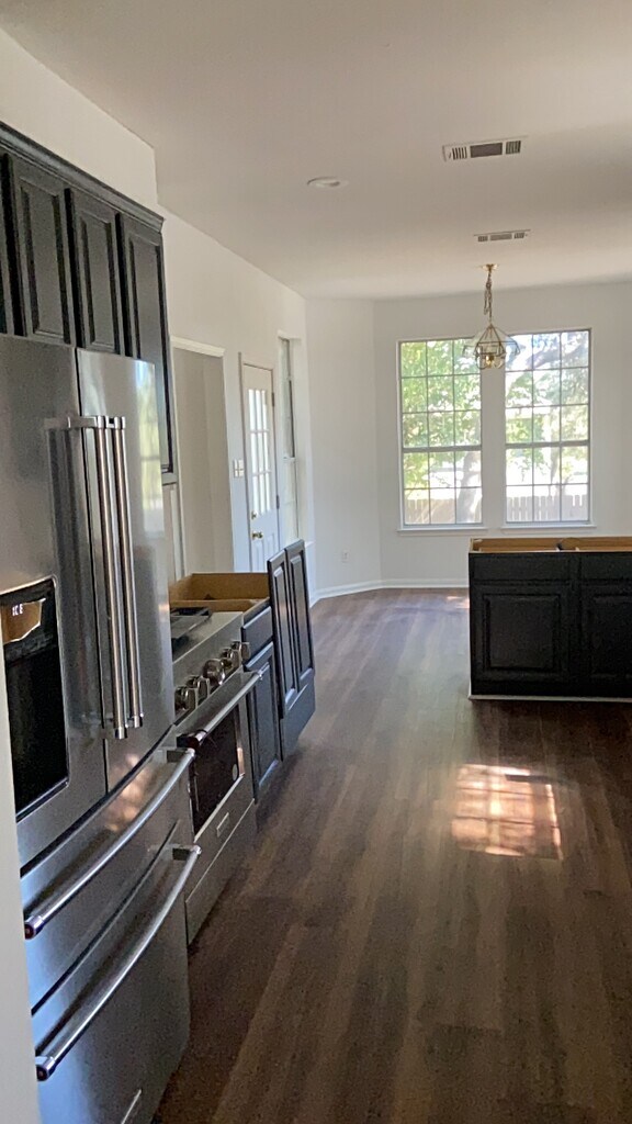 Stylish 4-Bedroom Retreat in the Woods of Legend Oaks | Southwest Austin Nearing completion, this stunning 3,477 sq. ft. home blends modern comfort with natural tranquility. Nestled among mature oak trees on a beautiful corner lot, the property offers a serene setting where the midnight moonlight filters through the branches, illuminating the spacious outdoor deck the perfect place to unwind or entertain. Inside, you'll find bright, open living spaces with both upstairs and downstairs living areas. The primary suite on the main floor and the kitchen/breakfast nook have doors that open directly to the deck, creating a seamless indoor-outdoor connection. Recent upgrades include a new roof and AC system, fresh interior paint, and all-new vinyl flooring for a sleek, contemporary feel. The kitchen shines with brand-new KitchenAid appliances, including a gas stove, ready for culinary creativity. With its ideal location in Southwest Austin, enjoy easy access to US-290 and Loop 1 (Mopac) perfect for quick trips downtown or Hill Country escapes. Experience modern living surrounded by nature. Your Woods of Legend Oaks retreat awaits.