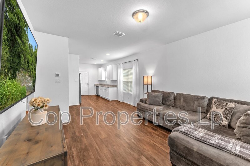 This is a fabulous three-bedroom, two-bath home. It is still within the homebuilder's warranty period. The huge backyard with a privacy fence is excellent for entertaining pets and quiet days/evenings. There is also an oversized two-car garage. The home has been well cared for and maintained. Neighborhood amenities include a pool, playground, and soccer field. It is close to JBSA Randolph (15 minutes) and Brooks Army Medical Center (13 minutes). Exclusions: Water Filtration System and Security System.
