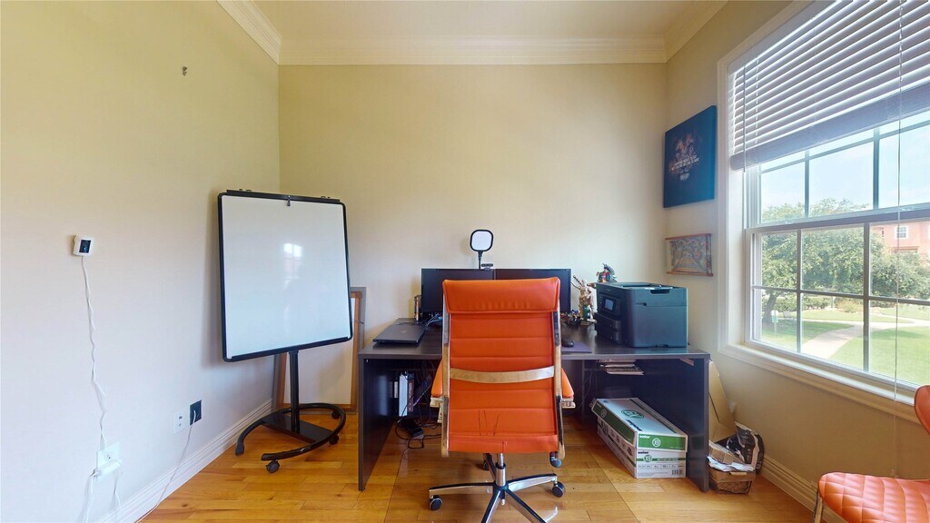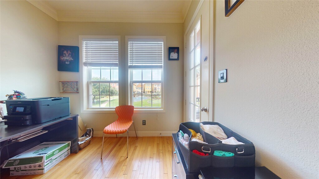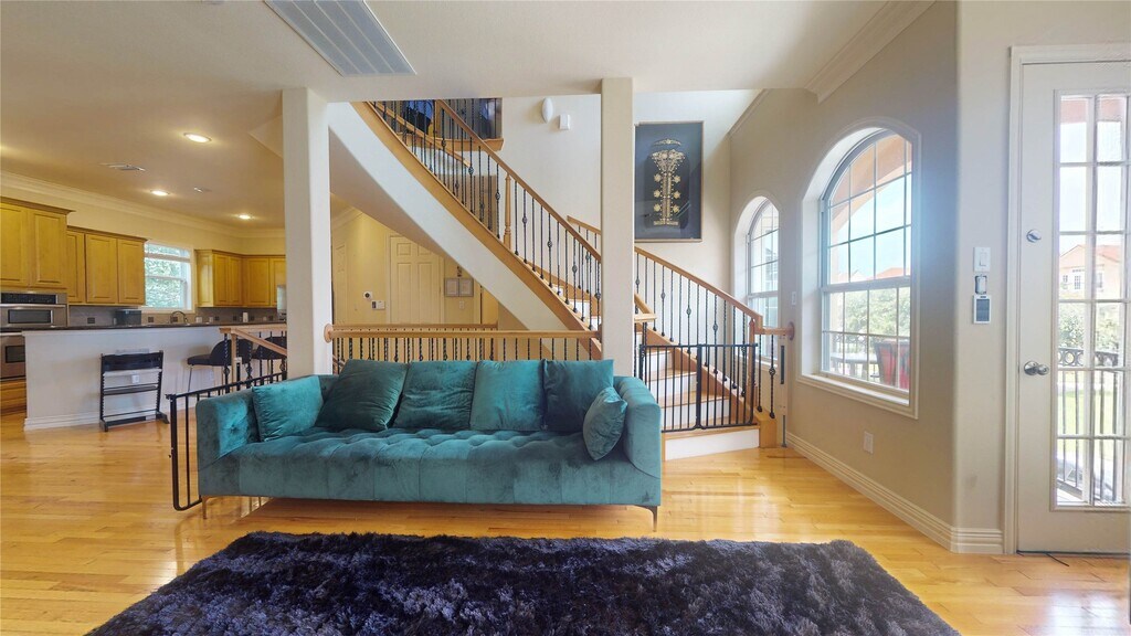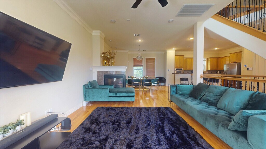 4 BR,3 1/2 bath,2 car remote garage with Theater room and office with large fenced lot. 1st floor; has full bath and bedroom,with potential suite and walk out private patio. 2nd flr; is all wood floors except in wet areas,w/3 way fire place,double crown moulding,granite in kitchen & baths,and walk out balcony. 3rd floor; is 3 bedrooms,w/walkout balcony w/ French doors from the Master. Community has swimming pool,hot tub,club house,basketball court,dog park,golf course,pond,and fountain. Great location to Med Center,Downtown,Oil Corridor,and Galleria. MLS# 4454977