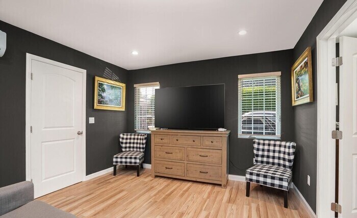 Welcome to this charming single-story home located on a quiet cul-de-sac in Van Nuys, offering a flexible living layout with a 3-bedroom, 2-bath main residence plus a detached 1-bedroom, 1-bath permitted ADU. This property provides comfort, privacy, and generous outdoor living space. The main home features a bright living room with a cozy gas fireplace that flows into the formal dining area. The kitchen includes stainless steel appliances, ample cabinetry, a separate backyard entrance, and a dedicated laundry area. Two bedrooms with generous closet space share a recently renovated bathroom with an oversized shower and built-in bench seating. An additional bedroom off the living room includes sliding glass doors to the backyard and access to a second full bathroom. The private backyard retreat is ideal for relaxing or entertaining and features a wraparound covered patio, jacuzzi, decorative garden archway, and a detached studio/flex space with electricity, perfect for a home office, gym, or creative workspace. The permitted ADU (7130 Mammoth Ave) offers a well-designed layout with a kitchenette and center island, living area, spacious bedroom with walk-in closet, modern full bathroom with step-in shower, and a bonus room suitable for a home office or studio. An oversized storage room is located adjacent to the ADU for added convenience. Additional property highlights include a gated driveway, recently updated roof, and excellent access to nearby parks, shopping, dining, and major commuter routes. This versatile property offers privacy, functionality, and multiple living options in a desirable neighborhood setting. Contact us to schedule a showing.