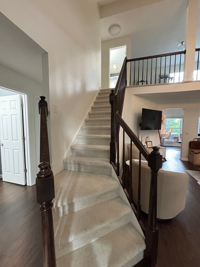 Recently updated 2-bedroom, 2-bath, 1,600 sq. ft. townhouse in a quiet neighborhood. Features high ceilings with an open loft perfect for an office or workout space. New windows (replaced in 2021) fill the home with natural light and beautiful views. New HVAC system (2023), updated flooring, new closet organizers, and main-floor laundry with washer and dryer included. Two-car garage provides plenty of parking and storage. Couch, coffee table, and kitchen table set can be left if desired. Lawn care and trash paid by owner- electric and water paid by renter. Owner pays for trash and lawn care. Renter is responsible for electric and water. Security deposit is one month's rent. No smoking allowed. Up to two pets total allowed. 6 month lease minimum.