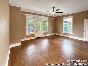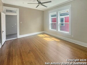 Live in the heart of downtown San Antonio in this stylish and spacious upstairs duplex unit featuring 2 bedrooms and 2 full bathrooms. Located just minutes from the Pearl, San Antonio College, and the River Walk, this charming home blends historic character with modern convenience. Enjoy hardwood floors throughout, high ceilings, and abundant natural light. The open living and dining area is perfect for entertaining, while the kitchen offers updated appliances and plenty of storage. Each bedroom is generously sized, with the primary suite featuring a private en-suite bath. A large front balcony provides a great space to relax and take in the urban energy. Don't miss this opportunity to enjoy downtown living with quick access to dining, shopping, and major highways. Available now for immediate move-in!