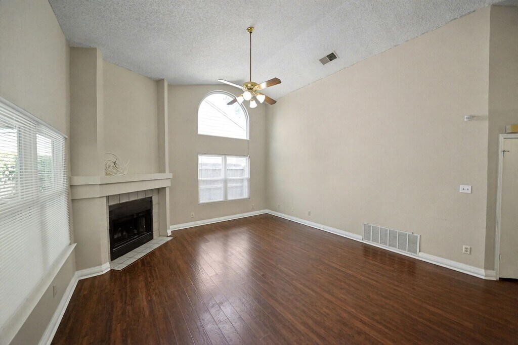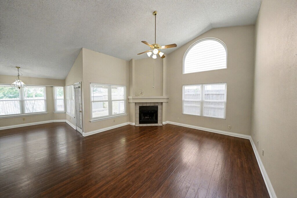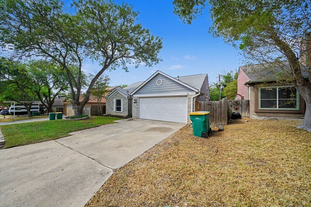 Charming residence available for lease in close proximity to Randolph Air Force Base. This 3-bedroom, 2-bathroom abode boasts an inviting open floorplan adorned with durable vinyl plank flooring and elegant ceramic tiles throughout. The capacious family room is adorned with soaring ceilings and a warm, inviting fireplace. Centrally positioned, the kitchen showcases matching black appliances and a comfortable seating area. The primary bedroom is thoughtfully separated from the secondary rooms, offering a private retreat complete with a full en-suite bathroom featuring a dual vanity and a convenient combination garden tub and shower. A delightful backyard oasis awaits, complete with a sheltered patio and an additional deck, perfect for gatherings, relaxation, and play. Enjoy the added convenience of being within walking distance to Converse North Park, with its scenic walking trails, playful playgrounds, and versatile sports court. Arrange a viewing of this remarkable home today, before it finds its new tenant.