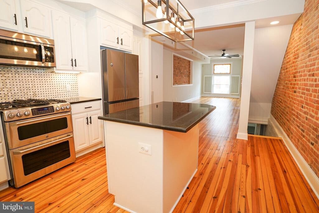 This beautifully updated Canton townhome offers the rare combination renters actually want: off-street parking, a massive rooftop deck, and three true bedrooms with three full baths. The main level features an open floor plan with exposed brick, original hardwood floors, high ceilings, and abundant natural light. The renovated kitchen includes stainless steel appliances, a gas range, ample cabinetry, and an island ideal for everyday living or entertaining. Upstairs, you’ll find two spacious bedrooms, including a front bedroom with its own private full bath, plus a second updated hall bath . The fully finished basement offers a third bedroom and full bath—perfect for guests, roommates, or a private home office setup. Step outside to enjoy one of Canton’s standout features: a huge rooftop deck with sweeping city views, ideal for relaxing or entertaining. One-car off-street parking adds everyday convenience, and the wide alley access makes coming and going easy. All of this is just steps from Canton Square, Patterson Park, the waterfront, restaurants, shops, and neighborhood favorites.
