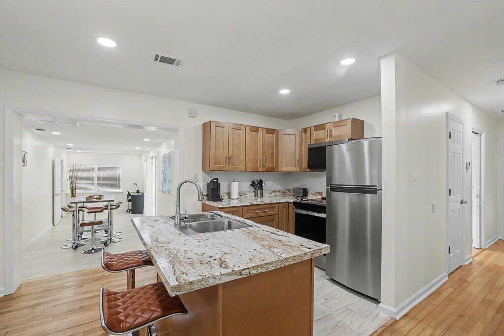 Welcome home to this beautifully updated 1,600 sq. ft. ranch in the heart of Tallahassee! This move-in-ready 4-bedroom,2-bathroom residence has been comprehensively renovated,featuring a modern interior with a spacious living room and a versatile flex space perfect for a Dining/home office. The redesigned kitchen boasts new cabinetry,sleek countertops,a custom tile backsplash,and stainless steel appliances. Both bathrooms are fully refreshed with modern vanities and fixtures,including a stylish walk-in tile shower. Additional interior highlights include a dedicated climate-controlled laundry room,fresh paint,recessed lighting,and a mix of hardwood and luxury vinyl plank flooring throughout. Major system updates provide total peace of mind: New HVAC (2024),new water heater (2024),full plumbing re-piping,and a 2019 architectural shingle roof. The exterior offers great curb appeal with a 2-car carport and a large,private backyard featuring a spacious patio—ideal for entertaining. Perfectly located just minutes from FSU,FAMU,and downtown,this home combines classic charm with contemporary convenience. Furniture and accessories not included