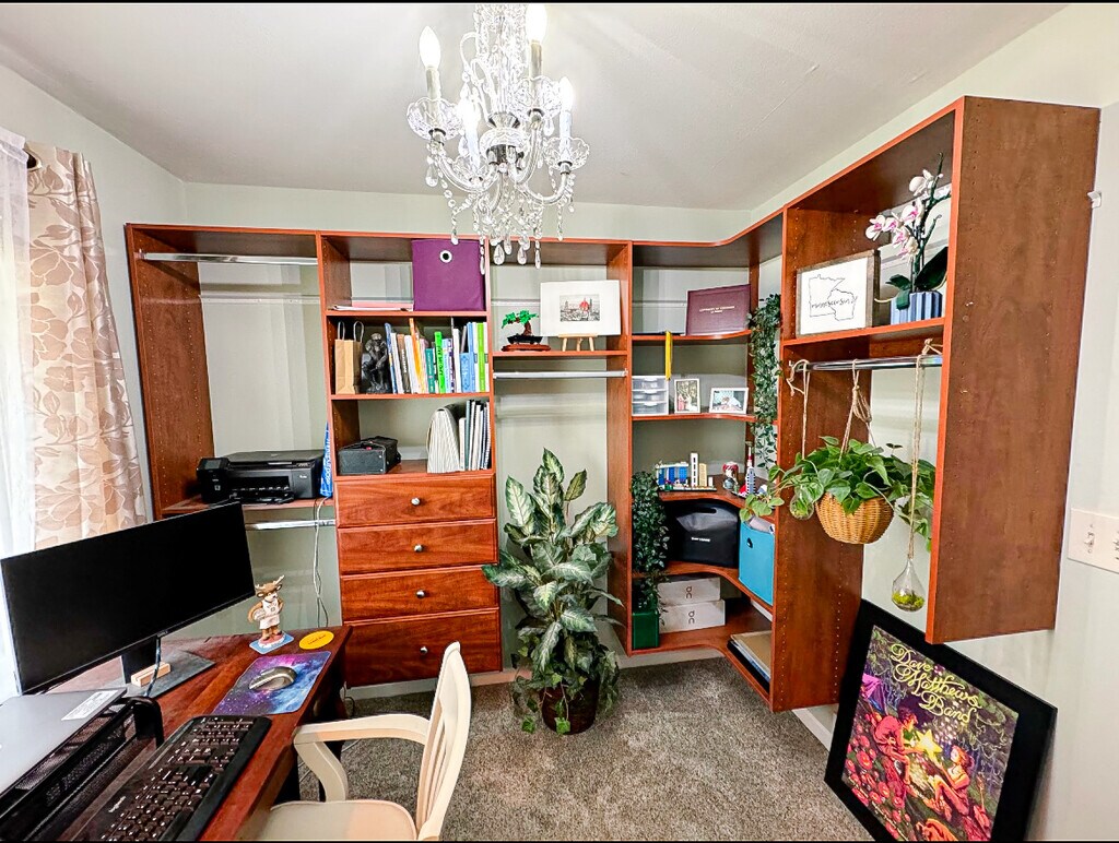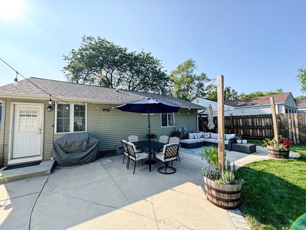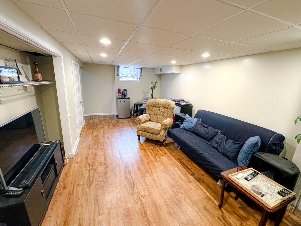 Welcome to this inviting 3 bedroom home, where natural light fills the open living space, creating a bright and airy atmosphere. The third bedroom has been thoughtfully converted into a home office, complete with built-in shelving for added convenience. The spacious bathroom features double sinks and a relaxing bathtub, offering a perfect retreat. Outdoors, enjoy the privacy of a partially fenced yard and a large backyard patio, ideal for entertaining. The 2.5 car detached garage includes ample storage shelving, while the fully equipped laundry room and finished basement—provide extra functionality. With storage throughout the home and located in a family-friendly neighborhood, this property offers both comfort and practicality for modern living. *the house comes unfurnished with the option to purchase some furnishings. More details will be given at the showing.
