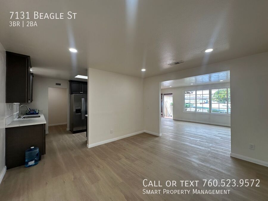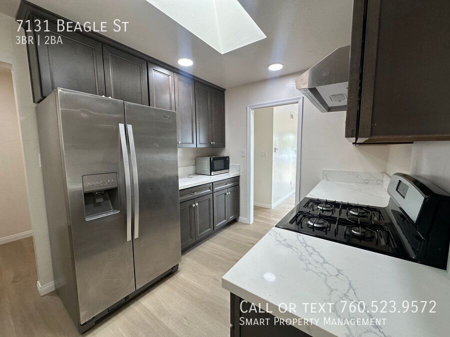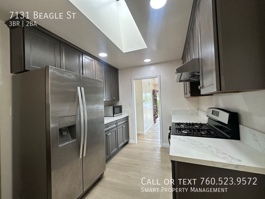Step into comfort and sophistication with this beautifully upgraded 3-bedroom, 2-bathroom single-family home featuring an attached 2-car garage. Perfectly located in the sought-after Linda Vista/Clairemont neighborhood, this residence blends modern finishes with timeless charm. Interior Highlights: A gourmet kitchen with brand-new cabinetry, sleek countertops, and modern appliances Skylight windows in the kitchen and bathroom, filling the home with natural light and a bright, inviting atmosphere New laminate flooring throughout for a seamless, contemporary look Fresh interior paint for a crisp, move-in-ready feel Luxuriously updated bathrooms with ceiling-height tile showers for a refined, spa-like experience Bonus Living Space: Enjoy the flexibility of an extended living room, perfect for a home office, playroom, or simply relaxing while basking in the natural light. With its central location, you’ll have easy access to shopping, dining, schools, and major freeways—while enjoying the privacy and comfort of a single-family home. This move-in-ready gem offers the perfect blend of style, function, and convenience. To make an appointment to see the unit, or if you have any other questions, please call: or visit our website at