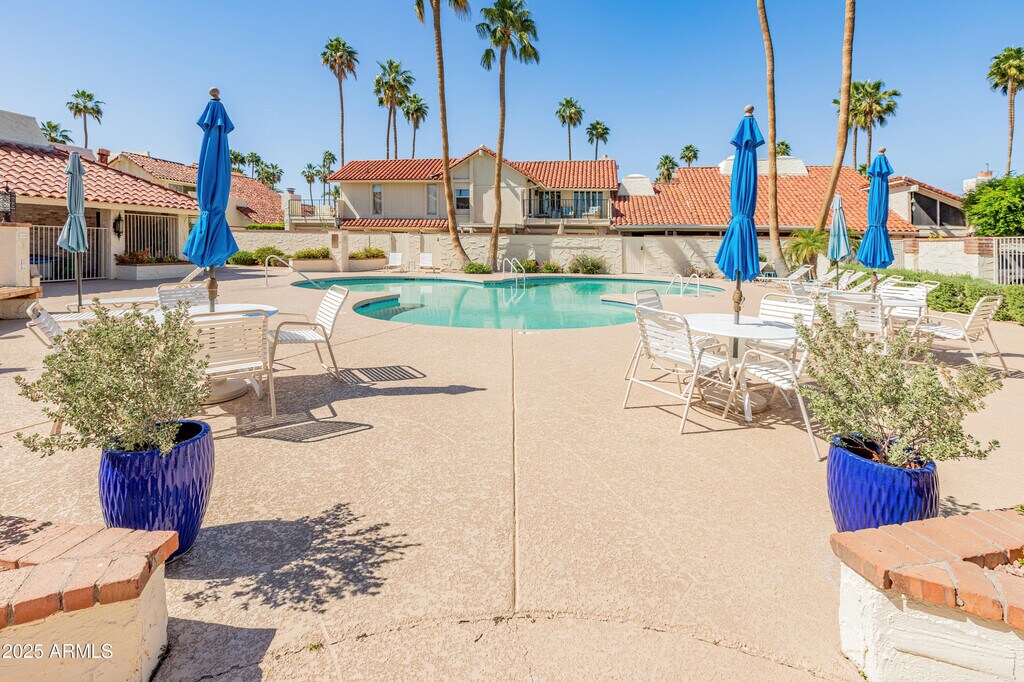 Enjoy the best of Scottsdale living in this low-maintenance townhome,ideally located within minutes of Old Town,Fashion Square,and the scenic trails of Camelback Mountain. The light and bright interior features soaring vaulted ceilings and a spacious loftperfect as a second living area,home office,or flex space. Step outside to your private patio with a tranquil water feature,creating a peaceful retreat. Residents have access to a beautifully maintained community clubhouse with a pool,spa,fitness center,and BBQ area.