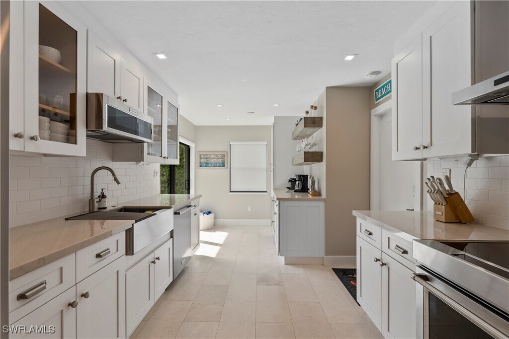 Modern Luxury,Coastal Living...The Perfect Beach Getaway! Fabulous completely renovated Pool Home using only the finest quality materials,finishes and superior workmanship with attention to every detail. Natural light abounds throughout the open concept living space with natural stone flooring throughout,the sleek and stylish kitchen will inspire the chef in you with the quartz counter tops all wood constructed cabinets,Kitchen Aid appliances including,induction cooktop stove,wine fridge perfect for cooking a casual meal with your family or entertaining a few friends. Plenty of storage throughout this home and the attached 1-car garage,all impact rated windows and doors. Ideally located in the heart of North Naples in a prime spot,west of US41 in Naples Park close to dining,shopping,schools,entertainment & 2 world renowned Naples beaches. Relax your cares away in the fully fenced well-manicured backyard oasis with brand new heated saltwater pool and spa. Bike to the beach,the Ritz,the Pelican Bay County Tennis Program,LA Fitness,Paragon Theater and all the exquisite shopping & dining at the Mercato,Pavillion & Waterside Shops. Paradise Awaits...
