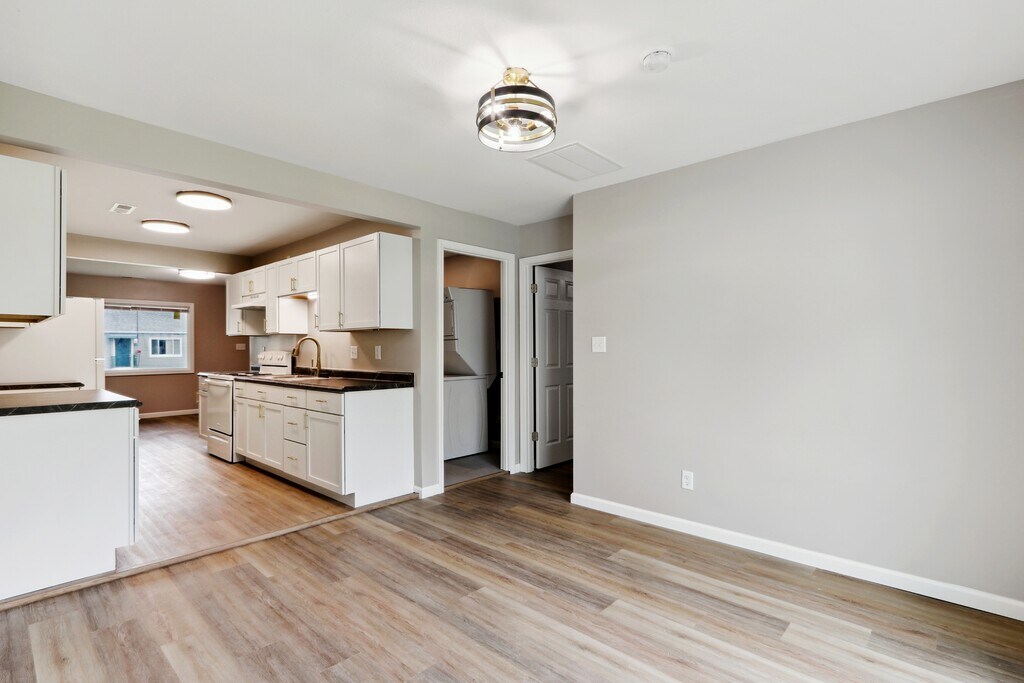 Free Application: Apply online at then call to schedule a showing M-F 9a-4p at . Property Highlights: 4 bedroom / 2 bathroom / 1 car attached garage with large yard. Completely updated, plank flooring. Utilities: Tenant responsible for all utilities. Sewer billed back at $25/month. Appliances include: refrigerator, oven/stove, range hood, washer, dryer Yard/Snow care: Tenant responsible for all yard care and snow removal Pet Policy: All pets need approval. $250 nonrefundable fee plus $30/month. Additional Requirements: Renters Insurance Required. Deposit-Free Renting: Offered through Obligo. Learn more at Credit scores lower than 600 require double deposit.