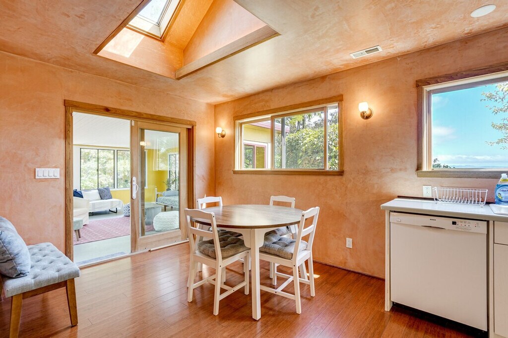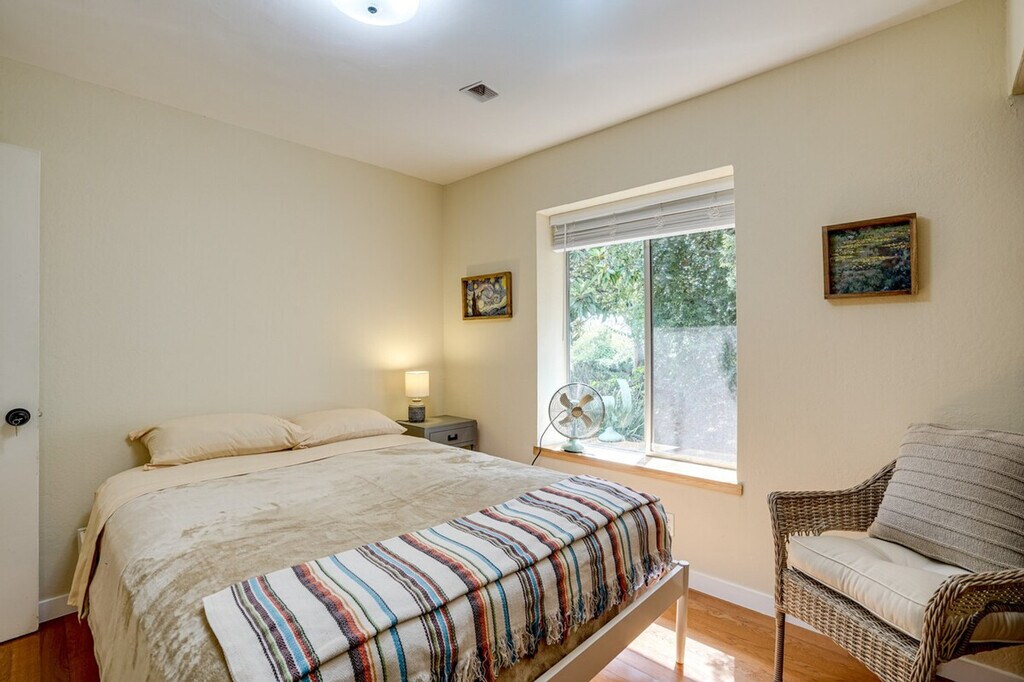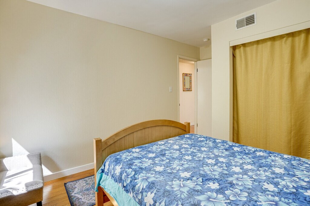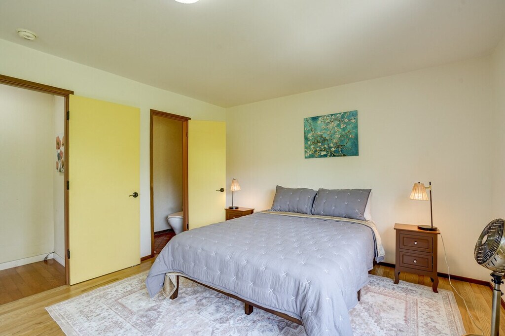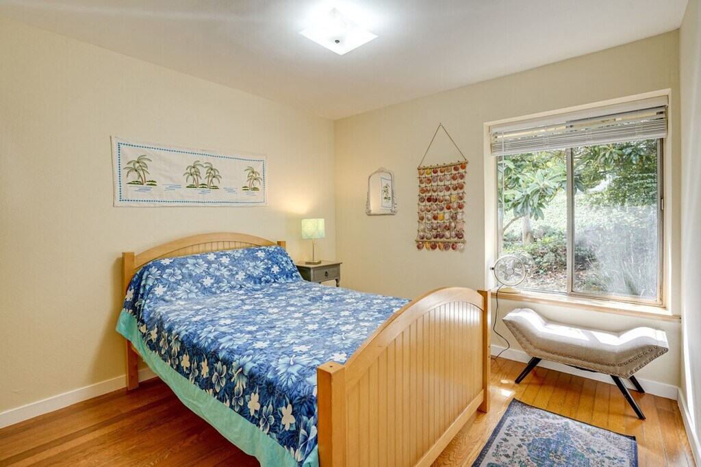 Feel at home in this open-concept 4-bedroom, 2.5-bath vacation rental, perfectly situated for exploring the beauty of California. Located just steps from the bus stop and 8 miles from the train station, this home offers easy access to San Pablo Bay and is ideal for day trips. Enjoy the fresh bay air on the patio in the morning, and unwind in the sunroom with a home-cooked meal in the evening. This home features a sunroom, a smart TV in the living room with bay views, and a patio with a bistro table. The large backyard is equipped with outdoor furniture and two charcoal grills, one big and one small. The kitchen is fully equipped with a refrigerator, stove, oven, dishwasher, microwave, drip coffee pot, espresso machine, blender, toaster oven, cooking basics, dishware, flatware, and spices. A dining table is also available for your meals. Parking is available in the driveway for two vehicles. The property is conveniently located for those who enjoy walking or biking to San Pablo Bay. It's just steps from a bus stop and 8 miles from the train station, making it easy to explore nearby attractions like Pinole Valley trails, local markets, and San Francisco hot spots. This 2-story home requires one step for entry, with three bedrooms and two full bathrooms on the first floor and a half bathroom on the second floor. Smoking, pets, and events or large gatherings are not allowed. Guests must be at least 24 years old to book. Keyless entry is available for easy access. The home offers free WiFi, making it remote work-friendly. A washer and dryer with detergent, an iron and board, linens, towels, complimentary toiletries, a hair dryer, and hangers are also provided for your convenience. [SI]