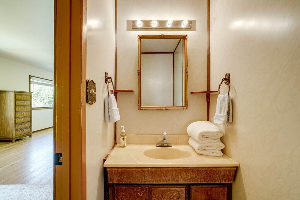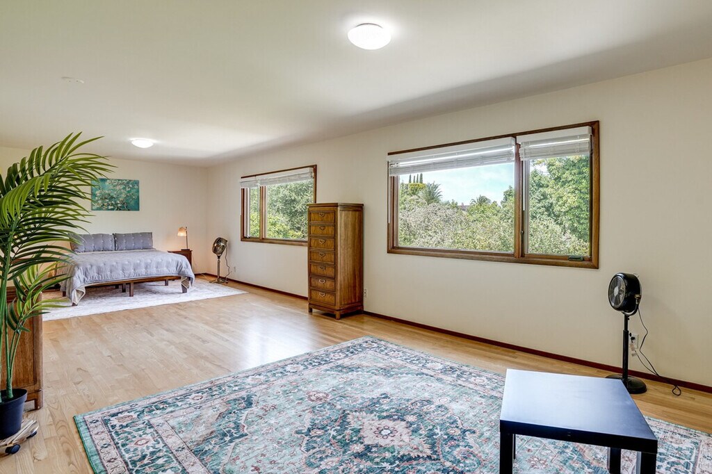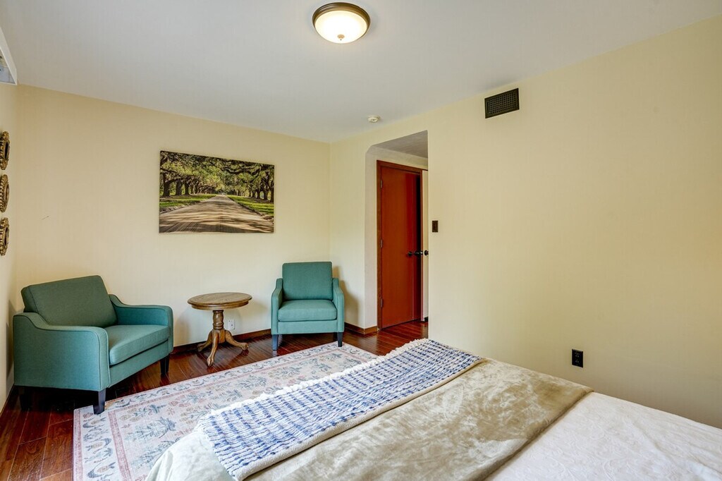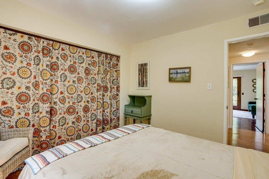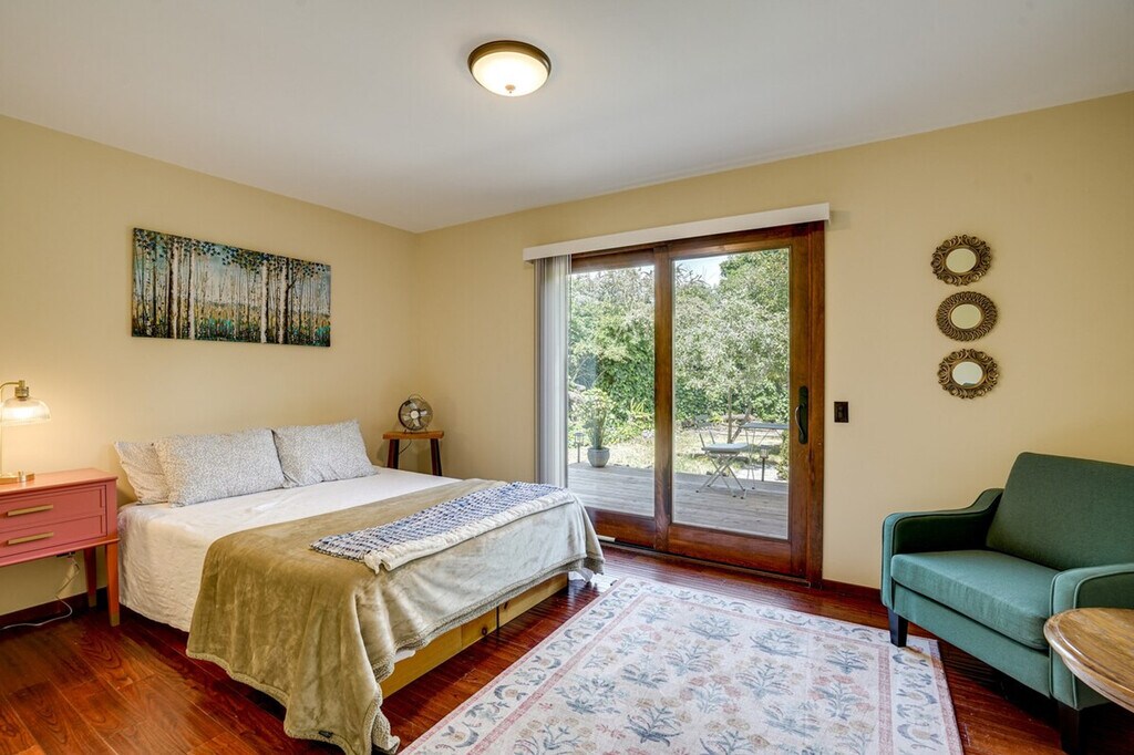 Feel at home in this open-concept 4-bedroom, 2.5-bath vacation rental, perfectly situated for exploring the beauty of California. Located just steps from the bus stop and 8 miles from the train station, this home offers easy access to San Pablo Bay and is ideal for day trips. Enjoy the fresh bay air on the patio in the morning, and unwind in the sunroom with a home-cooked meal in the evening. This home features a sunroom, a smart TV in the living room with bay views, and a patio with a bistro table. The large backyard is equipped with outdoor furniture and two charcoal grills, one big and one small. The kitchen is fully equipped with a refrigerator, stove, oven, dishwasher, microwave, drip coffee pot, espresso machine, blender, toaster oven, cooking basics, dishware, flatware, and spices. A dining table is also available for your meals. Parking is available in the driveway for two vehicles. The property is conveniently located for those who enjoy walking or biking to San Pablo Bay. It's just steps from a bus stop and 8 miles from the train station, making it easy to explore nearby attractions like Pinole Valley trails, local markets, and San Francisco hot spots. This 2-story home requires one step for entry, with three bedrooms and two full bathrooms on the first floor and a half bathroom on the second floor. Smoking, pets, and events or large gatherings are not allowed. Guests must be at least 24 years old to book. Keyless entry is available for easy access. The home offers free WiFi, making it remote work-friendly. A washer and dryer with detergent, an iron and board, linens, towels, complimentary toiletries, a hair dryer, and hangers are also provided for your convenience. [SI]