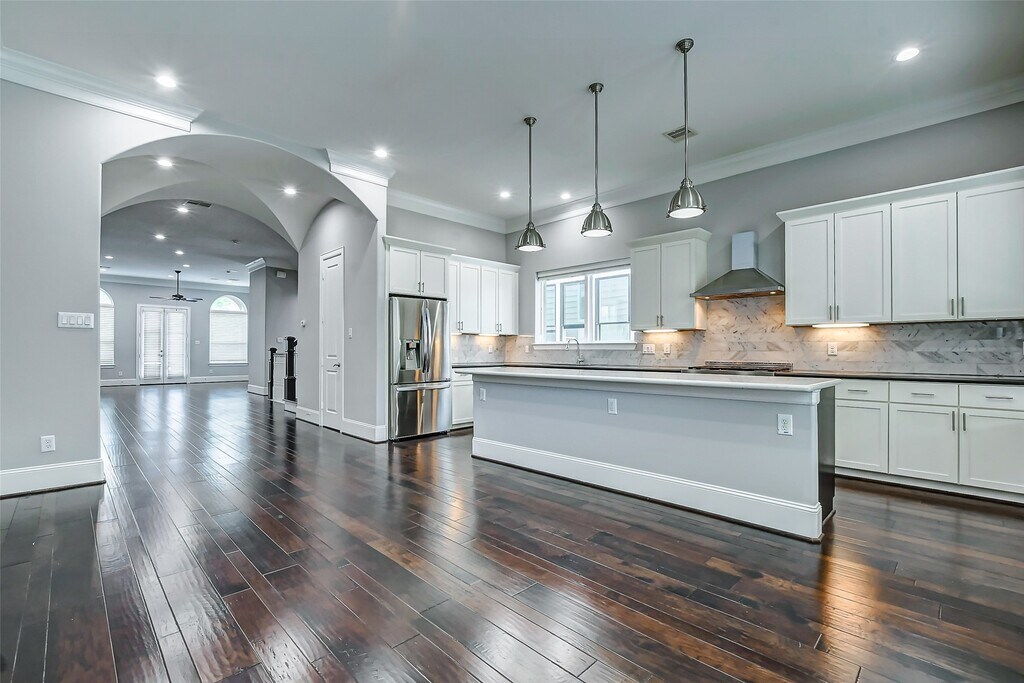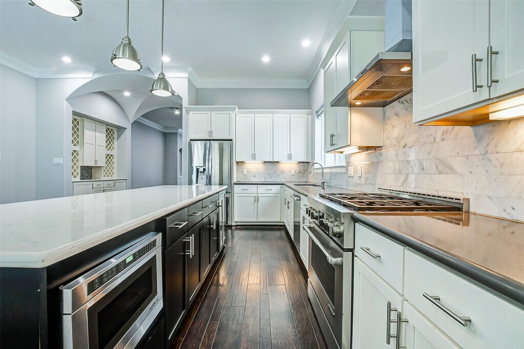 Tucked in the heart of Montrose,this three-bedroom home has over 3,400 square feet of living space. The home features solid oak floors and top-of-the-line Jenn-Air appliances. The ground-floor patio leads to a fenced in backyard that is perfect for pets,but you and your guests will likely spend your time gathering on the rooftop deck for a view of the city skyline. This flawless location that is minutes from Downtown,is tucked in a neighborhood with award-winning restaurants,offbeat bars,music dives,and funky shows with plenty of local soul. Completely repainted interior with new tile floors and ALX Pro Westcoat Pro waterproof walking deck system installed in 2025. 12+ month rent is $4500,18+ month rent is $4400 MLS# 21337790