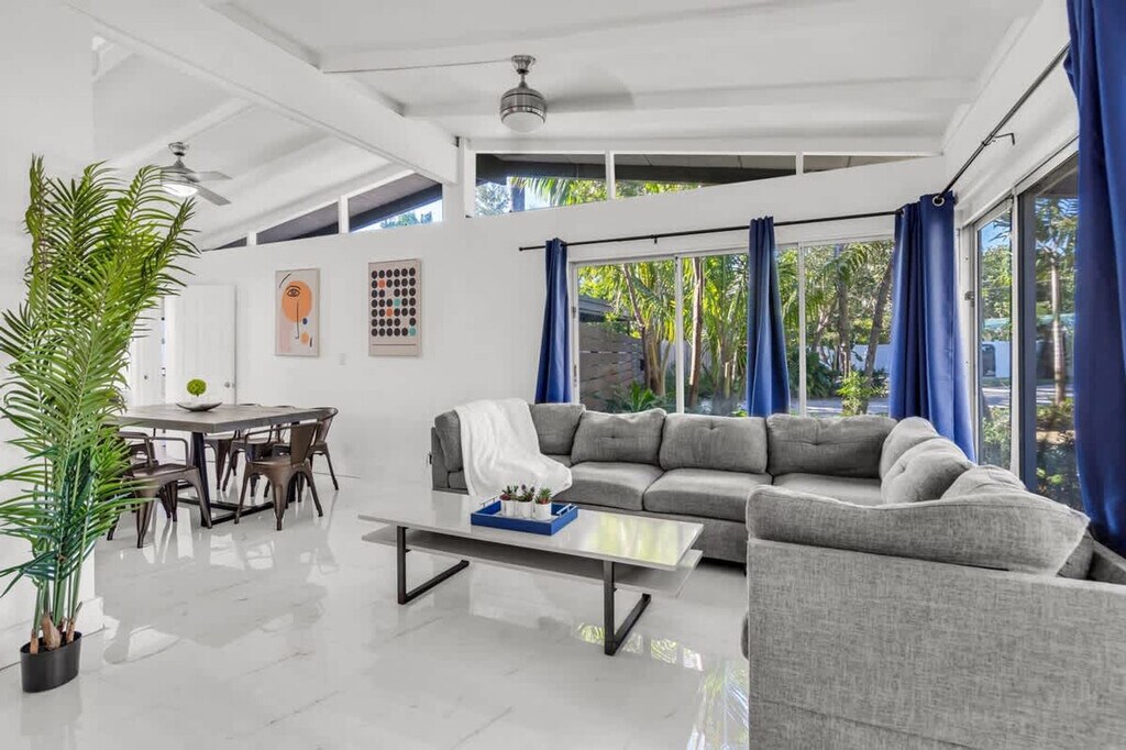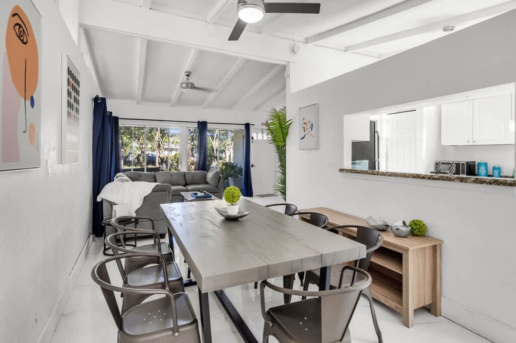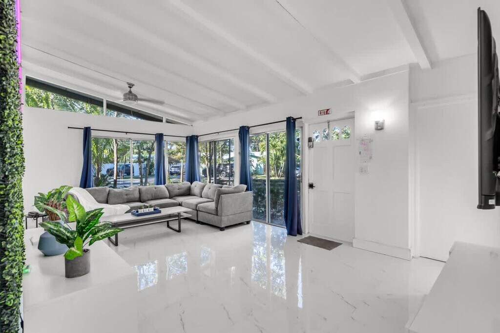 Welcome to your Fort Lauderdale retreat. Feel at home in this 4-bedroom home that offers an upscale stay close to the beach and nightlife. Enjoy modern amenities, a large living area with a smart TV and arcade games, and a fully stocked kitchen. Relax by the private pool with an outdoor sitting area, fire pit, and BBQ. High-speed free Wi-Fi and free parking are included. Centrally located near famous South Florida attractions, this apartment is 2 miles from downtown Fort Lauderdale, 3 miles from the beach, and 11 miles from Fort Lauderdale Airport (FLL). This is a pet-friendly property; please indicate how many pets you are bringing before booking. Please clean up after using the BBQ, or an extra $50 cleaning fee may apply. Smoking is not allowed inside the house. The landscaper will enter the property for scheduled lawn maintenance every 15 days, and the pool technician will conduct pool maintenance twice a week. These services are automatic, quick, and non-intrusive. [SI]