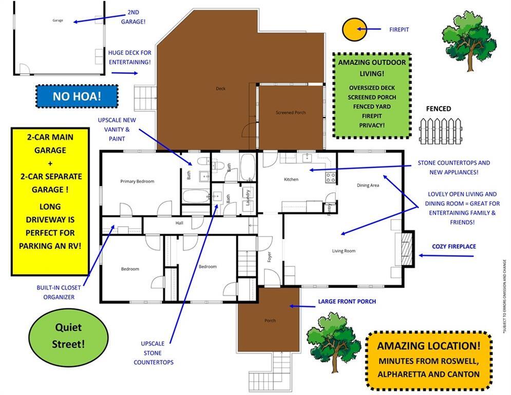 WOW! GREAT HOME FOR LEASE INCLUDES SEPARATE 2 CAR GARAGE FOR STORAGE PURPOSES! NO HOA! 4+ CAR PARKING! Nestled between Milton,Roswell,and Canton,this property sits at the end of a long private driveway in an established neighborhood,offering exceptional privacy paired with unmatched convenience. Located just seconds from major corridors,you’ll enjoy quick access to Downtown Woodstock,Roswell,Milton,and Canton. The interior has been thoughtfully updated with custom cabinetry and light granite countertops in both the kitchen and secondary bathroom. The Owners' Bedroom,with an en Suite full bath,includes a new,updated vanity! Lovely Engineered Hardwood flooring flows throughout the home. Spacious secondary bedrooms. You'll LOVE the Screened Porch and oversized deck overlooking the private,fenced yard—perfect for outdoor living and entertaining. The additional detached garage and pull-under garage space offer endless possibilities. Whether you envision a workshop,recreation room,flexible living area,hobby room or something entirely unique,this versatile space can easily adapt to suit your needs. With no HOA restrictions,you also have the flexibility to use the home as an Airbnb or rental. New Roof/Gutters 2020. ROOM FOR AN RV ON THE DRIVEWAY! GREAT LOCATION! SEQUOYAH HS DISTRICT! MLS ID 7755657