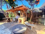 Base Rent: $5,200/month Utilities and Appliances Package: $500/month (Includes water, trash, electric and gas) EV charging available for a $50 fee This beautifully designed 2-bedroom, 2-bathroom home offers a perfect blend of comfort, style, and convenience. Pets are welcome! The main bedroom features a queen bed, an ensuite bathroom, and a large glass door that opens to a private backyard, providing natural light and easy outdoor access. The second bedroom includes a spacious window with garden views and a cozy office nook with desks and storage, ideal for remote work or creative projects. The home features a spacious living area with a fireplace. The kitchen is fully equipped with high-end appliances, including a vintage-style oven, stainless steel refrigerator, custom wooden cabinetry, and marble countertops. A center island provides additional space for cooking and storage. The dining area boasts a vaulted ceiling, skylight, and a long wooden table, with a glass door that opens to the backyard for seamless indoor-outdoor living. The two bathrooms are thoughtfully designed, one of which includes a relaxing bathtub. Parking options include one on-site parking space with an available EV charging option for $50, plus nearby street parking for easy access. The private backyard offers a serene retreat, complete with a stone fireplace, decorative fountain, and vibrant orange trees. A rustic outdoor barbecue area adds to the charm, perfect for relaxing or entertaining in the lush surroundings. This property is located in Santa Barbara's West Side, offering proximity to local attractions, shopping, dining, and recreational spots. The home is just a short drive to Santa Barbara's beaches, parks, and downtown, providing accessibility to all the city’s highlights. The house will be available on - We are looking for a short (30+ days) to long-term tenant. Tenants are required to secure renters insurance before the move-in date. This home is currently occupied, so showings are by appointment only. Don’t miss the opportunity to enjoy this fully furnished, thoughtfully designed home in a prime location.