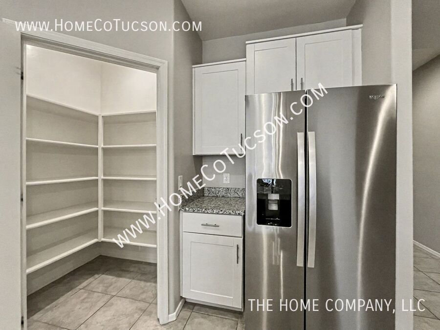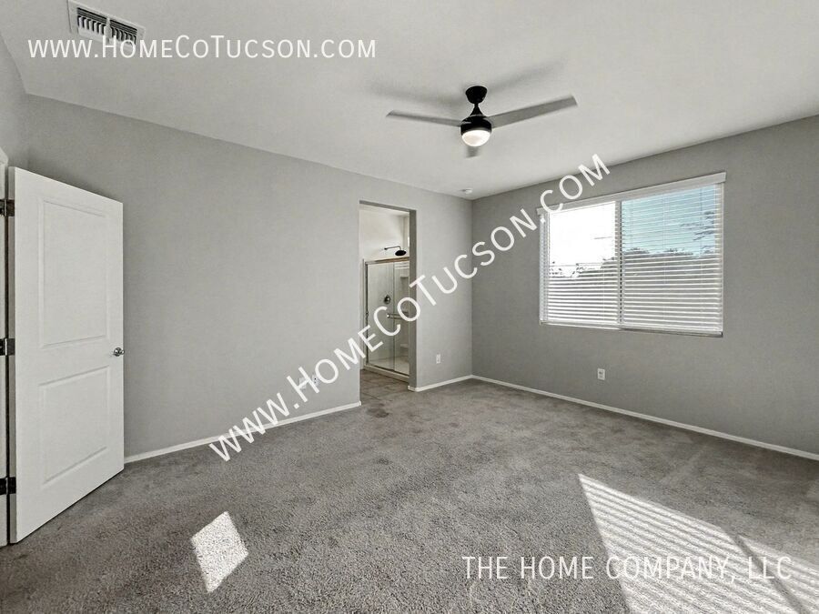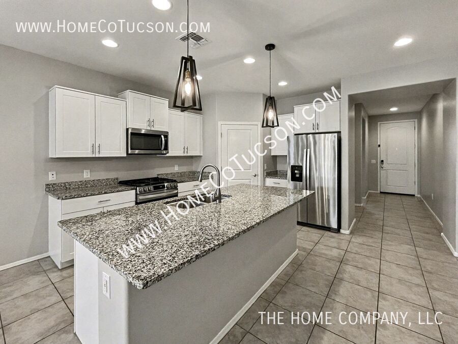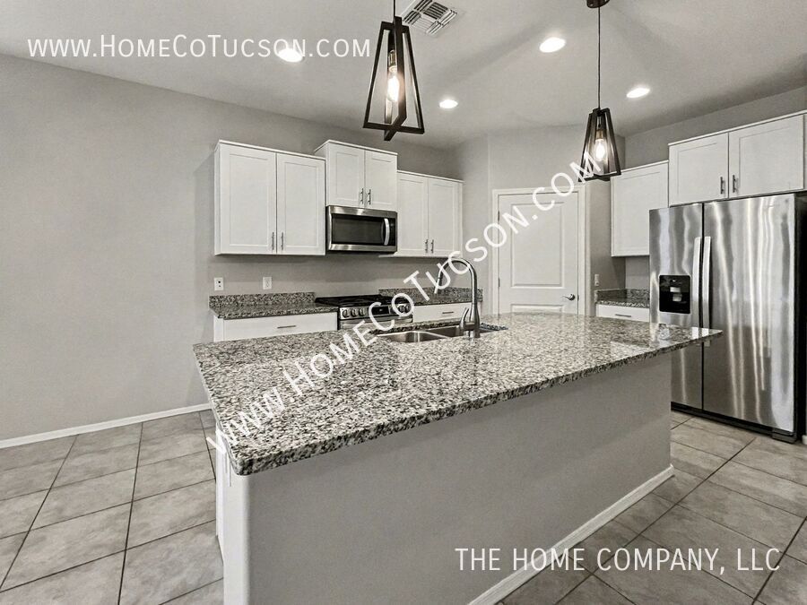 Welcome to this stunning home in the desirable La Estancia de Tucson community—offering scenic walking and biking paths, community parks, a sparkling pool, and quick access to I-10, shopping, and dining. This thoughtfully designed floor plan features two bedroom suites with private ensuite baths and a split-bedroom layout for added comfort and versatility. The home includes tile flooring throughout the main living areas and plush carpet in the bedrooms. The kitchen is the heart of the home, boasting a large center island with seating, stainless steel appliances, a gas stove, and a spacious walk-in pantry. The kitchen opens to an inviting family room filled with natural light, creating the perfect setting for everyday living or entertaining. A large den is conveniently located between two of the bedrooms, ideal for a home office or media area. The primary suite offers a luxurious ensuite bath and an enormous walk-in closet. Step outside to the covered patio and enjoy the professionally landscaped backyard complete with turf and pavers—a perfect blend of beauty and low-maintenance living. HOA: LA ESTANCIA DE TUCSON UTILITIES: Paid by the tenant VIDEO TOUR: Explore this property with our comprehensive video tour to get a closer look at every detail before scheduling an in-person visit. **Walking Tour** **Virtual Tour** To review our rental qualifications, apply, view additional video tours, or schedule a showing, please visit: **Website: ** For questions during business hours, please contact us: Text: Email: QUALIFYING REQUIREMENTS: Email for a full disclosure of fees and to review a blank lease document. Experience the difference with The Home Company! Visit to schedule a showing, apply, view additional media for each available property, and review detailed qualifying requirements and information. Proudly setting the standard for property management in Arizona, The Home Company is dedicated to improving the rental experience for both tenants and landlords. As an Equal Opportunity Housing provider, we are committed to fairness and transparency in every interaction. All our agents are licensed Real Estate Professionals, delivering knowledgeable support and exceptional service. Please note, The Home Company, LLC exclusively represents the Landlord in all property-related matters. As the Landlord’s authorized Agent, our responsibility is to act in their best interests throughout the rental process. Call: (Leasing Department, Monday–Friday, 10 AM–4 PM) To review our rental qualifications, apply, view additional video tours, or schedule a showing, please visit: **Website: ** For questions during business hours, please contact us: Text: Email: Built In 2021 Carpet Community Park Community Pool Covered Patio Dual Suites Dual Vanity Four Bedrooms Gas Stove Great Room La Estancia Laundry Room Lots Of Windows & Natural Light One Story Pavers Primary Bedroom With Ensuite Bathroom Southwest Gas 1 Split Bedroom Floorplan Tenant To Contact The Following Utilities To Establish Service: Three Bathrooms Trash Service Of Tenants Choice Tucson Electric Power Tucson Water Turf Two Car Garage Walled Rear Yard