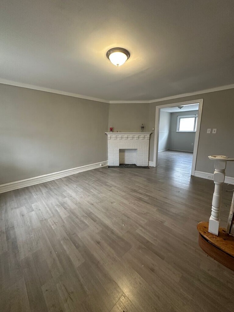 This charming 3-bedroom, 1-bath row home offers comfort, space, and convenience. As you arrive, you’re welcomed by a large fenced-in front yard and a cozy open front porch perfect for relaxing. Step inside to a spacious open-concept living room with brand-new vinyl plank flooring on the first floor. The layout flows into a formal dining room, and to the right is a long, functional kitchen featuring ample cabinet space and a gas range stove. The unfinished basement is clean, dry, and ideal for extra storage. Upstairs, you’ll find beautiful hardwood floors throughout, along with three generously sized bedrooms offering plenty of closet space. The full bathroom is conveniently located on the second floor. This home provides both comfort and practicality—don’t miss your chance to make it yours!