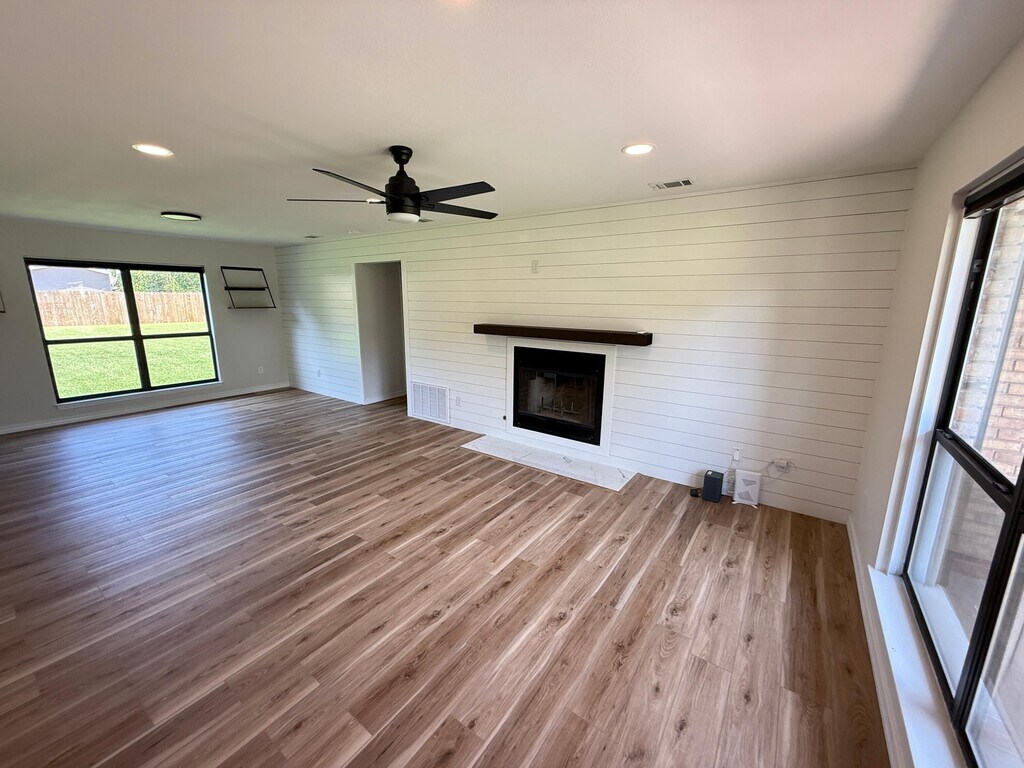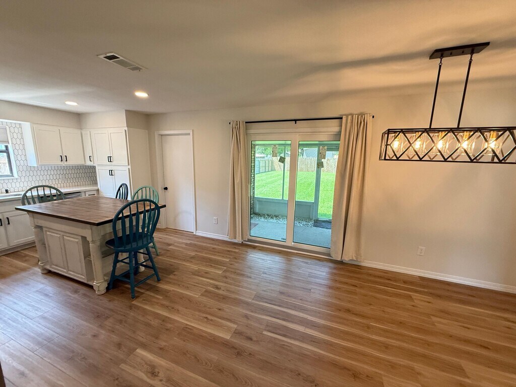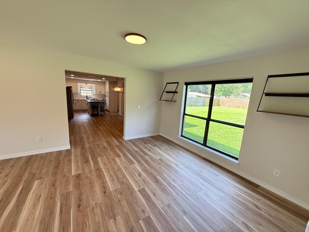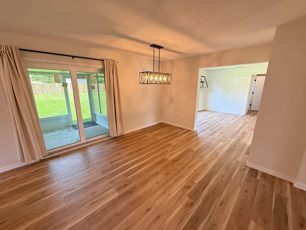 Beautifully updated and ideally located, this 4-bedroom, 2.5-bath Fort Walton Beach home offers both style and comfort. The open floor plan features new luxury vinyl plank flooring, fresh paint, and abundant natural light throughout. The kitchen is a showpiece with quartz countertops, shaker cabinets, stainless steel appliances, and a designer backsplash. All bedrooms are generously sized, with the master suite offering exceptional space and a private retreat. A front balcony adds an inviting outdoor space, while the screened porch in back overlooks a lush, professionally maintained yard. The fireplace, enhanced with modern shiplap, brings character to the living area. An extended garage provides room for two cars plus storage. Conveniently located just outside Hurlburt Field and only 15