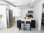 Welcome to 715 Hollywood Blvd - a beautifully renovated 3-bed/2-bath single-family gem in coveted Hollywood Lakes, minutes from Hollywood Beach, dining & top schools. This stunning one-story home sits on an oversized 12,022 SF lot and has been substantially remodeled with designer finishes throughout. Open-concept living & dining area with large-format porcelain tile floors, recessed LED lighting, and sliding glass doors to a resort-style covered patio. The spa-like primary bath features a double-sink vanity, frameless glass walk-in shower with rainfall showerhead, and luxe tile work. Second bath equally stunning. White shaker kitchen with stainless appliances and quartz countertops. Outside, mature royal palms and lush tropical landscaping create a private oasis with a covered entertaining deck. Paver driveway. No HOA. A true turnkey home on one of Hollywood's most sought-after streets. Move in ready! MLS # A11995237