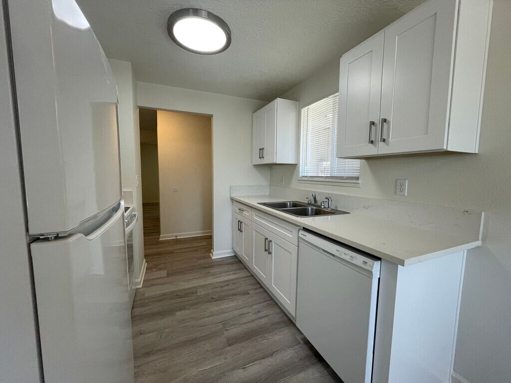 Walk in from your front door to an entry hallway that leads into your spacious living room just past the galley-designed kithcen. Your living room area offers ample wall space perfect for a couch/love seat combination and makes a great space for relaxing with family and friends. Your new kitchen offers ample cabinets and counter space and a charming window over the kitchen sink providing a view of the front area. Your kitchen appliance package includes all new appliances: refrigerator, stove/oven, and built-in microwave. Just past your kithcen is a dining nook that can accommodate a cozy table and four chairs. A short hallway leads to the bedrooms and laundry area with a provided Full-Size Washer and Dryer. Enjoy the convenience of completing laundry from the privacy of your home. Both bedrooms offer classic wall closets and one bedroom offers a half bath with a single vanity sink and commode. The hall bath offers a tub/shower combination, a single vanity sink with storage, and, a commode. Parking is off-street and each home has one space. This property is located near Gresham Crossing Shopping Center and Wood Village Shopping Center with access to SE Stark and NW Burnside Rd. Convenient to the Gresham Food Carts, Abby's Legendary Pizza, and Sol Tapatio Food Truck. Nearby parks include North Gresham Park, Parsons Pond, and Fujitsu Pond. Also, a few blocks from Microchip Technology Inc. Call or Text Our Leasing Agent to schedule a showing! English Speaking Spanish Speaking Visit our website to apply and view other homes we have available! Do you need property management services? Maximize your income and cut your costs!