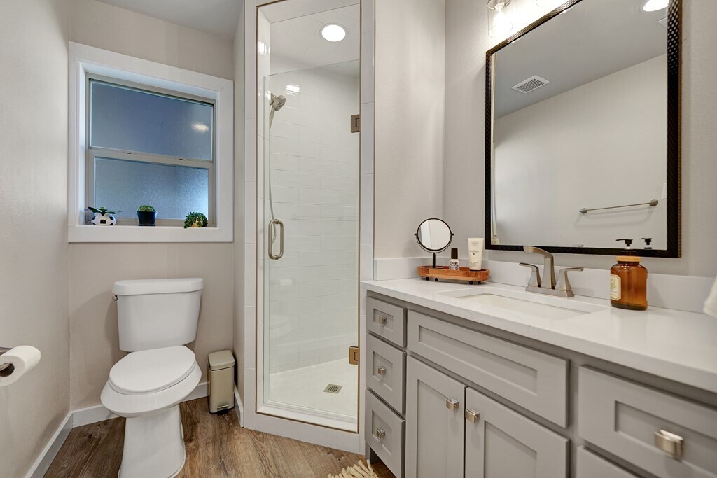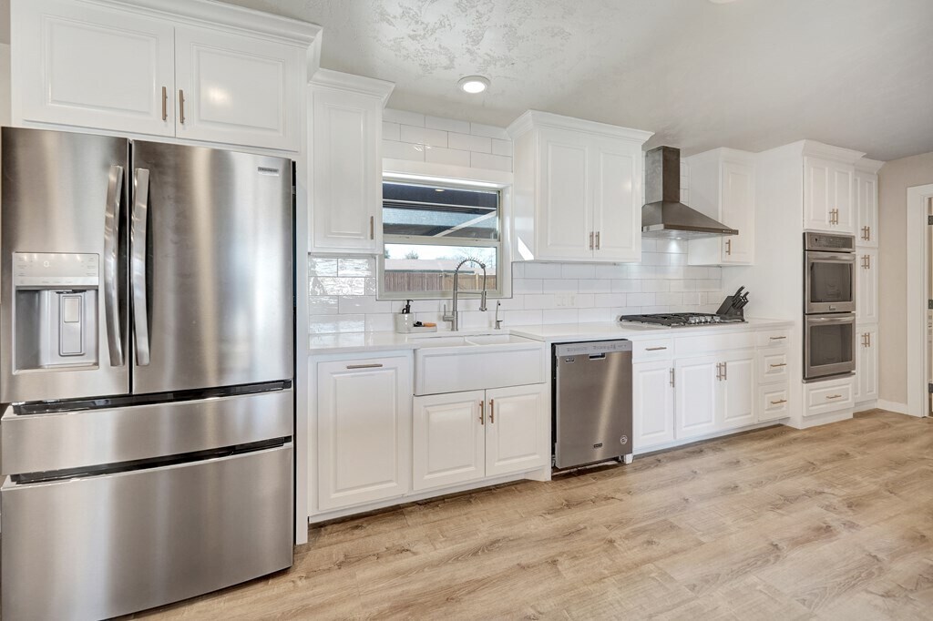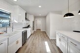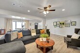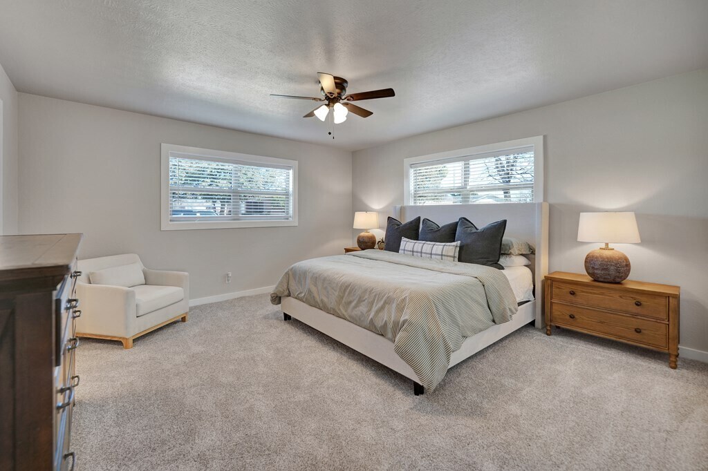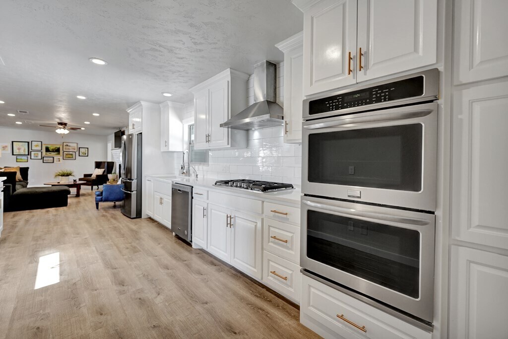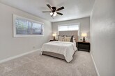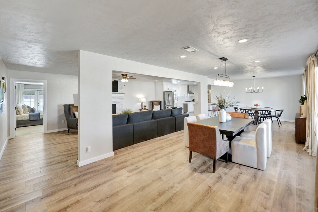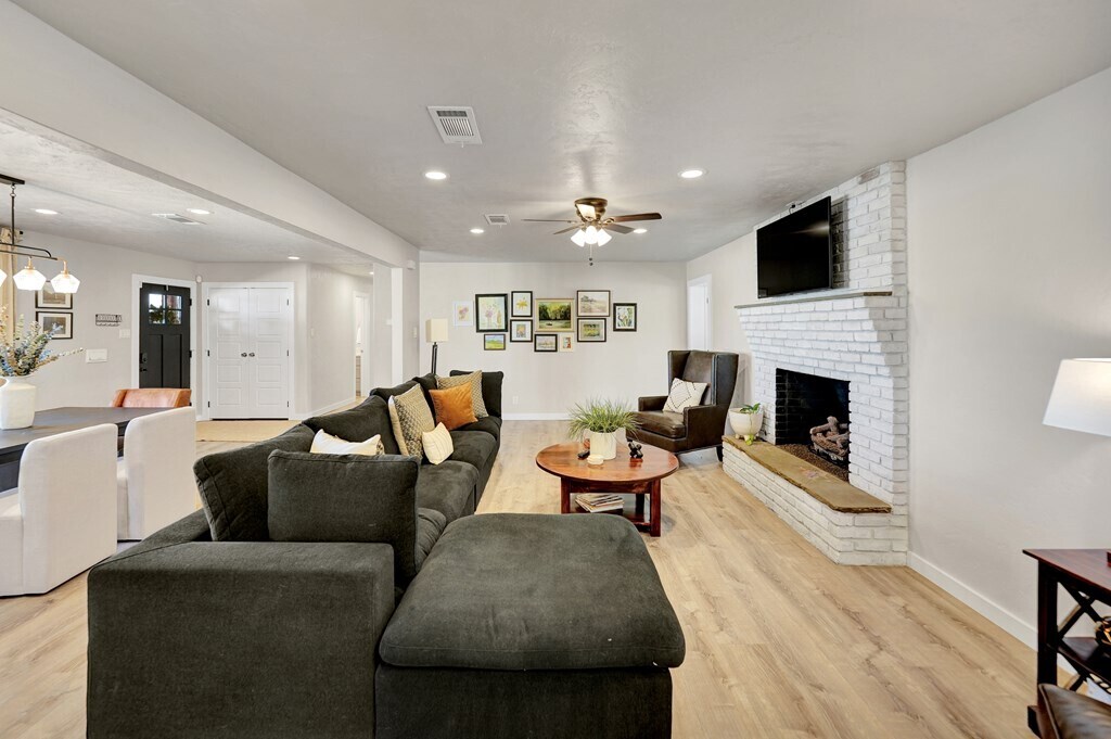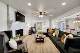 Open-concept layout flows seamlessly between living, dining, & kitchen spaces for effortless hosting. Quartz countertops, Gas stove & fireplace, updated lighting, ceiling fans, & double ovens elevate both style & function. Walls of windows bring in the natural light, while the primary suite offers a walk-in shower & walk-in closet. The backyard truly shines w/ new sod, full sprinkler system, pergola, concrete patio & walkways, outdoor lighting, & gas hookup for your grill. NO PETS.
