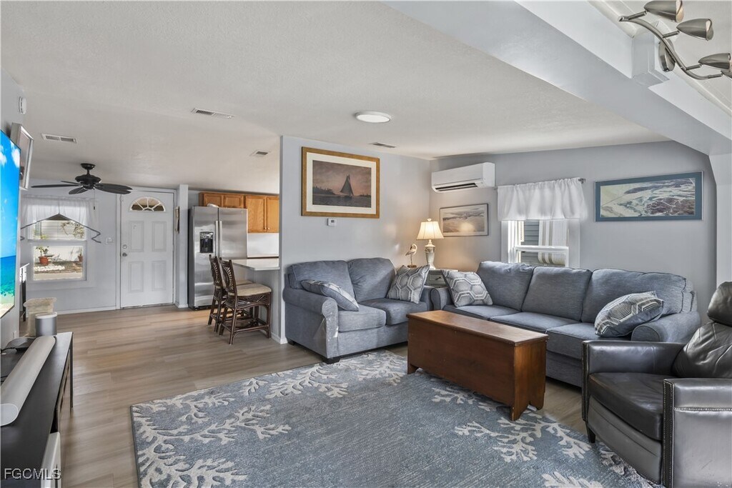 Welcome to Pine Island Cove — a boater’s paradise! Discover the ultimate Florida lifestyle in this 2-bedroom,2-bath waterfront home located in the vibrant 55+ community of Pine Island Cove. Set on a peaceful canal,this home is perfect for those who love life on the water. Bring your boat and get ready to explore! The property features a private dock with a 10,000 lb. lift,offering quick and easy access to Pine Island Sound and the Gulf of Mexico through the community boat lift. Whether it’s fishing,island hopping,or sunset cruising,your next adventure starts right from your backyard. Step outside to the newly added covered back deck,the perfect spot to relax and take in the tranquil water views. The yard is beautifully landscaped with thoughtfully planted trees and tropical plants,creating a private,lush retreat ideal for morning coffee or evening gatherings. Inside,the home has been tastefully updated,making it move-in ready. Pine Island Cove offers an active,friendly community atmosphere with amenities that include a sparkling pool,clubhouse,boat launch,park,dog park,pickleball courts,and more. Enjoy peaceful waterfront living surrounded by nature,great neighbors,and endless opportunities for boating and relaxation. This is the best of Pine Island living!