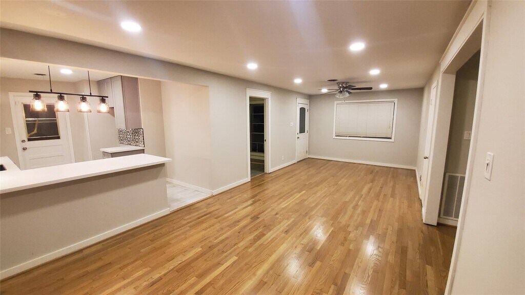 Remodeled with a Contemporary Flare~ This cozy house offers a defined yet open family room that cohesively connects to the breakfast area and kitchen emphasizing the functionality of the space. A Plethora of High End Finishes! Modern Kitchen with gorgeous white Quartz countertops contrasting with matte black gooseneck faucet and granite sink,chic grey cabinetry with elegant black hardware,stainless steel appliances and printed backsplash is sure to impress the classy tenant. White oak hardwood floors with silver grey stain aligns beautifully with the magazine worthy home. For showings,please text. MLS# 35100940