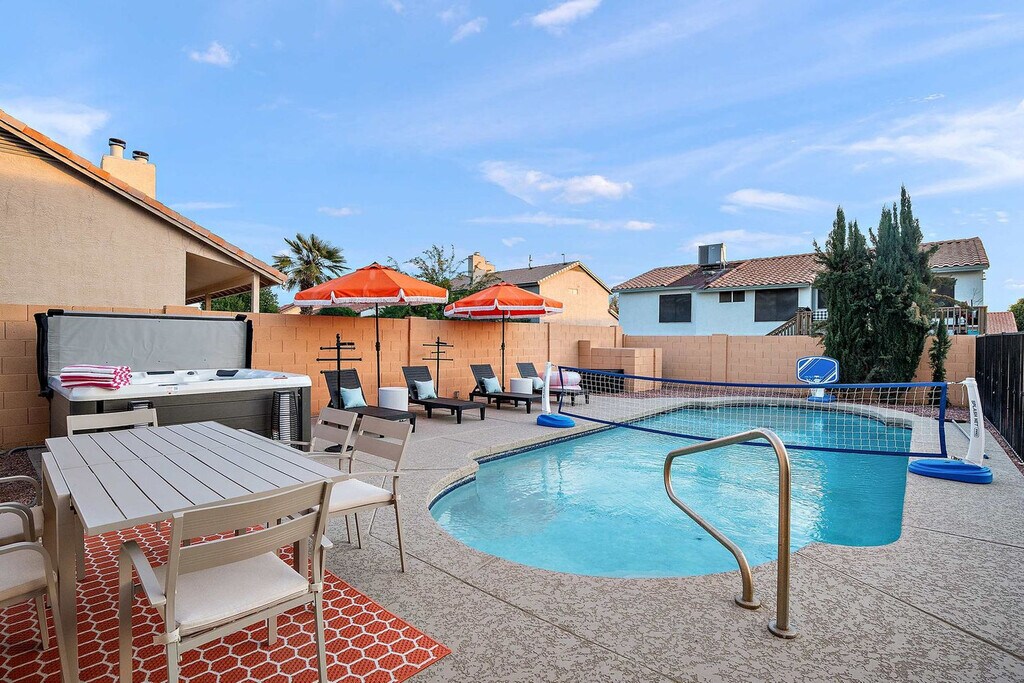 Feel at home in this 7-bedroom luxury home in a prime location in Peoria, AZ. This spacious home is designed specifically for families and groups. This home offers a basketball court, a free heated private pool with volleyball, a hot tub, an epic kids zone with three bunk beds each with its own slide, a media/theatre room with comfy seating, a stylish indoor bar and lounge, a pool table, an arcade, shuffleboard, a private 6-hole putting green, and an amazing backyard with a fire pit, grill, playset and tons of seating. The chef’s kitchen is fully stocked with high-end appliances, a large refrigerator, ample cabinetry, a large island, and a coffee maker. The living room features a smart TV, a large sofa, an indoor fireplace (please do not use), a high ceiling, an open floor concept directing to the kitchen, and direct access to the patio. There is also free heated swimming pool with tanning chairs and beach umbrellas, a sports court, a patio, string lights, outdoor games like cornhole, giant Jenga, and pool volleyball, and indoor games like arcade machines, shuffle board, a pool table, card games, board games, and a chess set. Up to 2 dogs are allowed for $125 per stay, no cats please. Welcome to a tranquil and inviting neighborhood in Peoria, where quiet streets, well-kept homes, and a warm community vibe create the perfect setting for your getaway. This area offers a comfortable suburban lifestyle with easy access to both outdoor adventures and city conveniences, making it ideal for families, couples, and friends looking for a relaxing yet connected stay. Just minutes away, you’ll find Lake Pleasant, perfect for boating, fishing, and water sports, as well as numerous parks and walking trails for hiking, jogging, or leisurely strolls. Golf lovers will appreciate the proximity to several scenic courses, offering beautiful desert landscapes and challenging fairways. Shopping centers, grocery stores, cafés, and restaurants are all nearby. Peoria offers family-friendly activities, local events, and easy access to the vibrant downtown areas of both Peoria and nearby Glendale, where sports, dining, and nightlife abound. Peoria Sports Complex is ~5–7 miles away, Lake Pleasant Regional Park ~10–15 miles away, West Wing Mountain Preserve ~5–8 miles away, Peoria Center for the Performing Arts ~6–8 miles away, and P83 Entertainment District ~7–9 miles away. Haymaker is ~3–5 miles away, Peoria Artisan Brewery & Gastropub ~4–6 miles away, Cold Beers & Cheeseburgers ~4–6 miles away, Fleming’s Prime Steakhouse & Wine Bar ~6–8 miles away, and Grimaldi's Pizzeria - Park West ~6–8 miles away. No parties are allowed, and violations may result in immediate termination of the stay. Guests must be 25 years or older to book this property. Check-in is at 4pm and check-out is at 10am. Registration Number: VST25-000017 [SI]