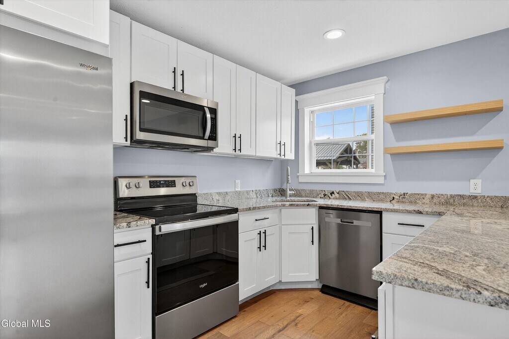 Welcome to this beautifully updated 3-bedroom,3-bath home located in the sought-after Ballston Spa School District,just 5 minutes from all the dining,shopping,and charm of downtown Ballston Spa. Hardwood floors flow throughout the home,complementing the bright and inviting layout. The updated kitchen features stainless steel appliances,quartz countertops,soft-close cabinets,and a cozy breakfast nook with a wood-burning fireplace. A flexible space on the first floor offers the perfect spot for a formal dining room or home office. The open living area is filled with natural light and offers direct access through sliding doors to the deck,overlooking the newly fenced-in backyard. Upstairs,the spacious primary suite provides a peaceful retreat,while the additional bedrooms are generously sized,offering plenty of room.