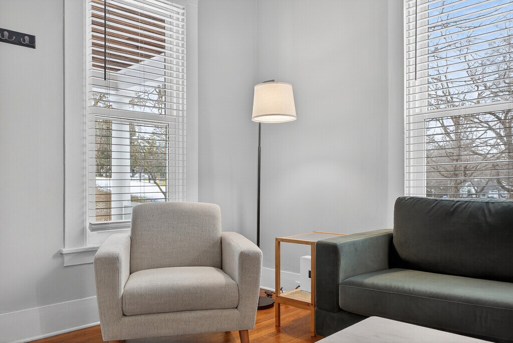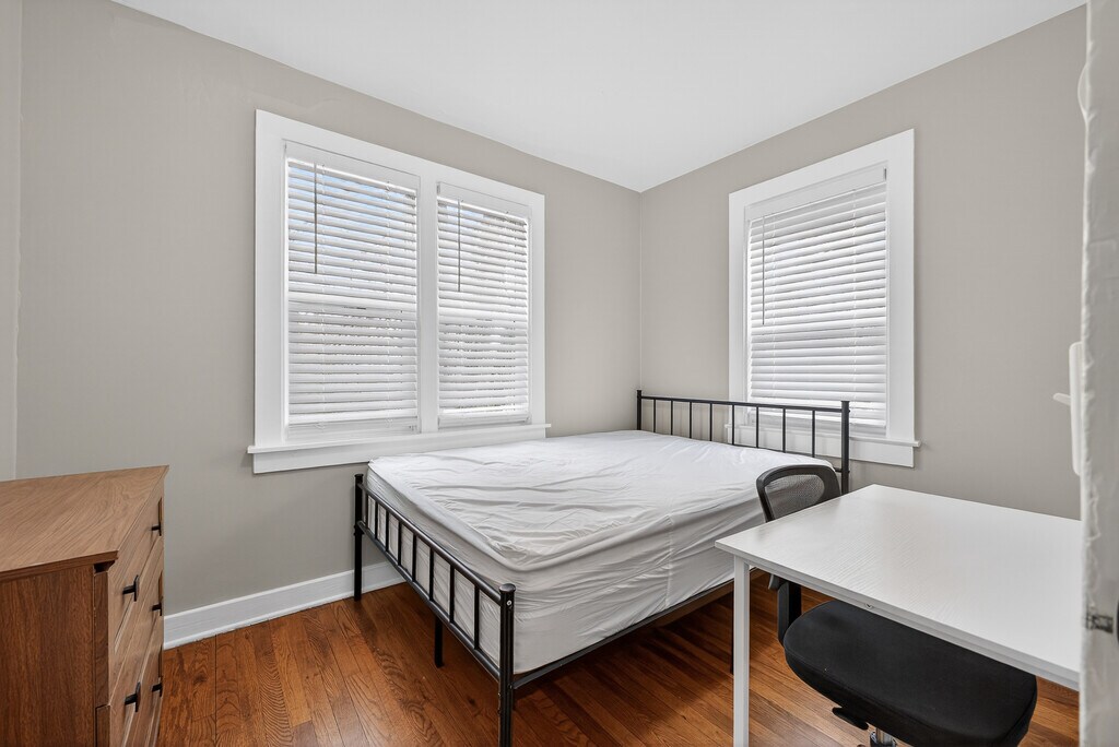 Private bedroom available in a 3-bedroom home across from Coit Park in Grand Rapids, within walking distance of the Medical Mile and Grand Valley State University. This clean, cozy home has one shared bathroom, a common living space, dining room, and updated kitchen with a large walk-in pantry. The bedroom comes furnished with a full bed, desk, dresser, and closet, making it a great option for students, medical residents, traveling professionals, or individuals seeking a comfortable private space. Home amenities include central air and heat, hardwood floors, stainless steel appliances, dishwasher, updated kitchen and bathroom, free on-site laundry, yard space, and off-street parking. *Does not include cooking/eating utensils, dishes, or pots & pans. Utilities included: electricity, gas, heat, water, air conditioning, and internet. Rent: $825/month (12-month lease) Flexible lease options available: $925/month for 3–6 month stays Multiple rooms may be available, making this a good option for friends or colleagues who want to live in the same home while maintaining private bedrooms and individual leases. This is a non-smoking home. Minimum qualifications: Monthly income of at least 2.5× rent, credit score 620+, and successful completion of a background and credit check. Application required prior to scheduling a viewing. Please submit the form on this page to learn more.