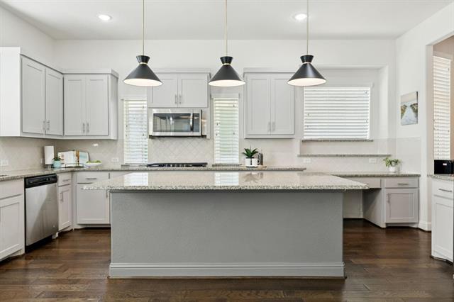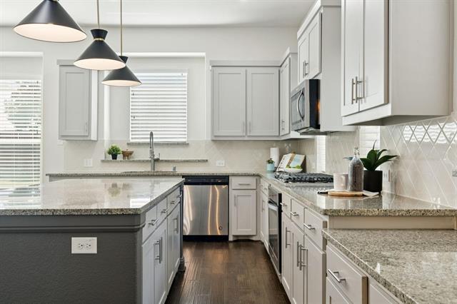 Beautiful 4-3.5-2 with attention to detail! The open floor plan downstairs offers a beautiful layout for entertaining with the perfect flow for all the common areas. The kitchen features stainless steel appliances, granite countertops, and a convenient mini office area for your home organizing. The downstairs also features a private office and dining room with a gorgeous art feature. Upstairs, newer carpet welcomes you to the living quarters, complete with a family room, all bedrooms, two full guest bathrooms, and laundry. The primary bedroom, with vaulted ceilings, features a sitting area that can double as a second office area and flows into the en suite. The en suite has separate vanities and a large walk in closet with built in shelves. Life in Savannah offers community events, parks, pools, splashpad, and many more amenities to explore. Close to restaurants, shopping, Dallas North Tollway and the Lewisville Lake Toll bridge, access to both sides of the metroplex make this home great for accessing all DFW has to offer!