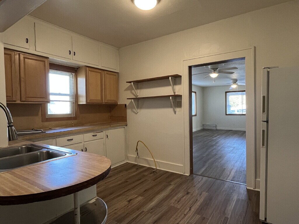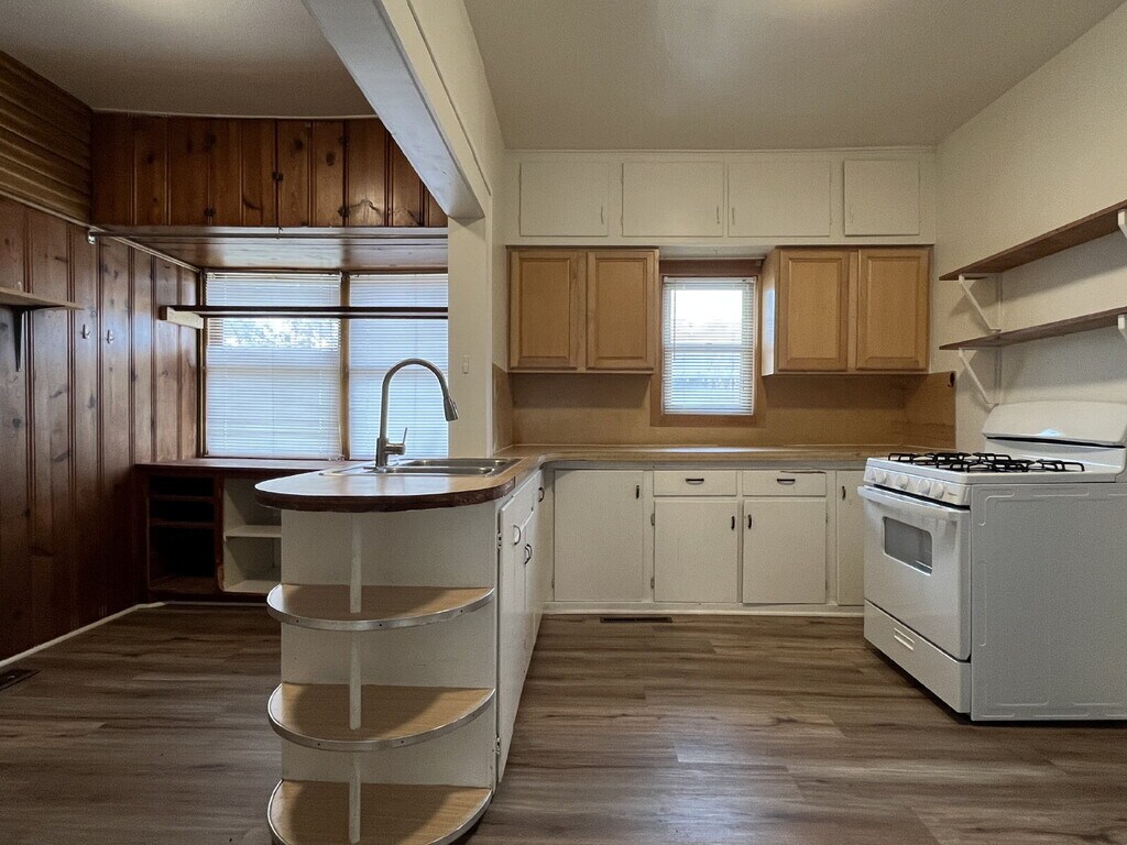 Available for June 1st move in!! Large 2 bedroom house for rent!! Newer stove, flooring and paint throughout done in late 2023. Home has a single car garage for storage and a large fenced yard. Appliances included are gas range and refrigerator. Central Heat & Air. Application fee is $35 per applicant.