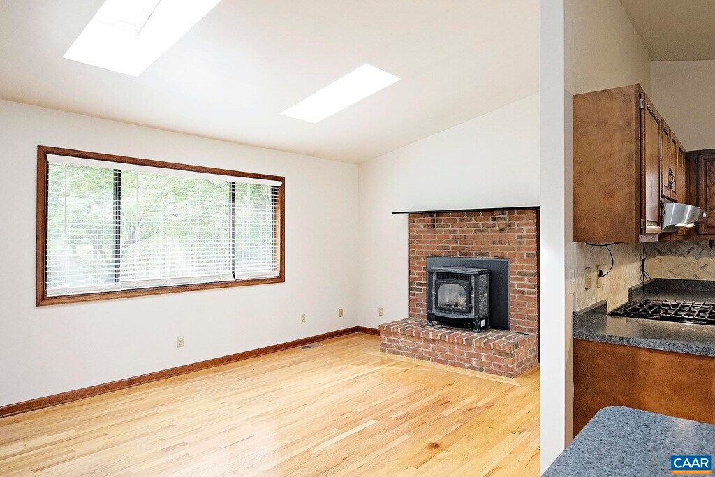Move-in Ready! This 3 bedroom, 2.5 bath home on 2 acres is located in the mountain foothills of W. Albemarle near Batesville, Crozet, and North Garden. Just minutes from Batesville Market, a historic country store, deli, grocery, and community gathering spot. Just 4 miles from the Miller School, and under 9 miles from 29 South, Pippin Hill Vineyard, and the Crossroads Store, as well as the 250 bypass, and the town of Crozet. Step into this 2,385 sqft home, where a vaulted ceiling with skylights and red oak flooring create an inviting atmosphere. The open living room with a cozy gas stove flows into the eat-in kitchen with ss appliances. A recent addition features a new living/dining room with a gas fireplace and opens to the deck. The main level includes a primary bedroom with an adjoining home office and an updated bathroom with a soaking tub, plus two additional bedrooms and a full bath. Downstairs, the finished basement offers a bonus family room, a 4th bedroom or office, and a half bath. Enjoy the convenience of a full-size washer and dryer, a two-car garage, and a carport. The private, wooded setting is perfect for relaxing under one of two pergolas, with frequent visits from local hummingbirds and wildlife.