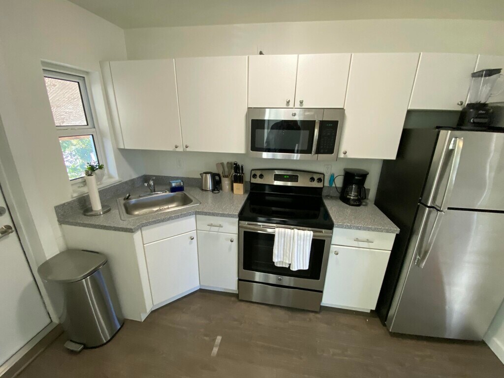 Welcome to this charming updated 1 bedroom 1 bathroom oasis in the heart of downtown Lake Worth Beach! This recently updated 1950s gem is a one-of-a-kind sanctuary that seamlessly blends history and modern comfort. Unit is beautifully fully furnished like a AirBnB!! Can be rented un-furnished as well . The living space is perfect for unwinding after a long day at work. Relax in the large back fenced in yard with a cup of coffee in the morning or sip a glass of wine in the evening. Stroll to the vibrant downtown just two blocks away known for its artistic flair,eclectic shops,and delectable dining options. The beach is just a short walk or bike ride away also. Off- Street parking. Owner is running a special: Move in with only first months rent and security deposit MLS ID R11156004