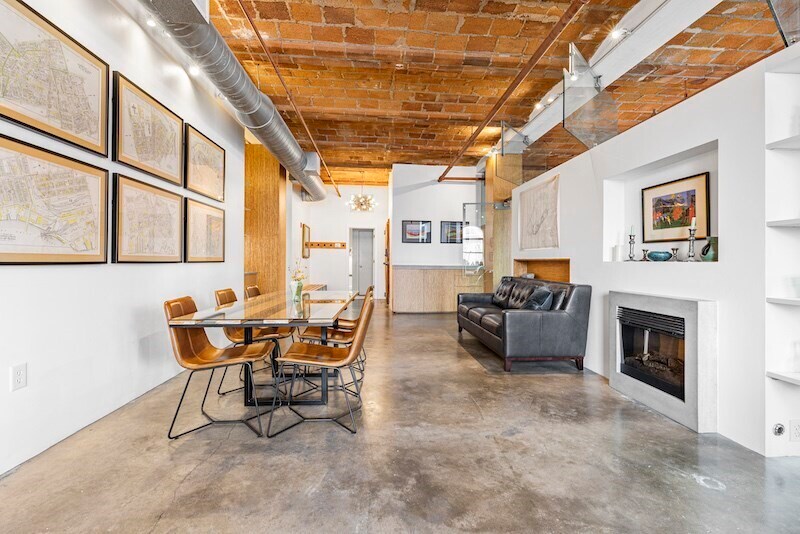 Available for rent is this modern designed loft in Boston's Historic Leather District. This corner LOFT features a proximity that allows for natural northeast light.The space features terra cotta rolled brick ceilings,polished concrete floors and an electric fireplace. Custom designed partitions divide the unit into various living areas. Glass and fabricated metal materials were used in this unique design. The loft has custom cabinetry and wardrobe storage systems. The kitchen is equipped with a complement of stainless steel appliances: gas range & oven,microwave,fridge and dishwasher. The newly installed countertops are a green Quartzite stone and there is an ample amount of maple cabinets. The bathroom has a large walk-in shower,wall mount sink and toilet. There is In unit laundry and central air conditioning. Heat,hot water and cooking gas are included in the monthly rent. Please NO SMOKING,NO PETS andNO UNDERGRADS. Available April 2,2026. MLS# 73477416