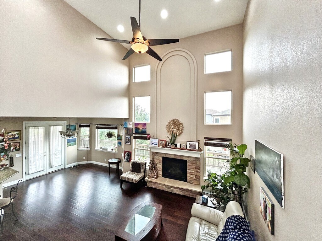 Step into style and comfort in this beautifully appointed 4-bedroom, 3.5-bathroom home, in Northgate Estates! Featuring an open floor plan with soaring ceilings and gleaming hardwood floors, this home offers both warmth and sophistication. The spacious living areas include a formal dining room, a cozy family room with a fireplace, and a decorative fireplace that adds charm and character. Bay windows flood the space with natural light, while ceiling fans provide year-round comfort. The gourmet kitchen is a chef’s dream with granite countertops, hardwood cabinets, a gas stove, stainless steel appliances, a large walk in pantry, and an eat-in breakfast area perfect for morning coffee. Retreat to the luxurious primary suite featuring a walk-in closet, a spa-like master bath with a jetted tub, and a separate shower for ultimate relaxation. Enjoy movie nights or gatherings in the fully finished basement, or unwind outdoors on the private deck overlooking a fenced backyard with a sprinkler system—ideal for entertaining or simply enjoying the peaceful setting. Complete with central heat and A/C, an attached 3 car garage, and a full-size washer and dryer, this home offers modern convenience in every corner. Located near Grey Hawk and Frog Leap's park, Air City, Top Golf, UC Health and Sprouts and more! Schedule your showing today! Applicant has the right to provide Landlord with a Portable Tenant Screening Report (PTSR) as defined in 38-12-902(2.5), Colorado Revised Statutes; and 2) if Applicant provides Landlord with a PTSR, Landlord is prohibited from: a) charging Applicant a rental application fee; or b) charging Applicant a fee for Landlord to access or use the PTSR. Landlord may limit acceptance of PTSRs to those that are not more than 60 days old. Confirm PTSR requirements directly with Landlord.