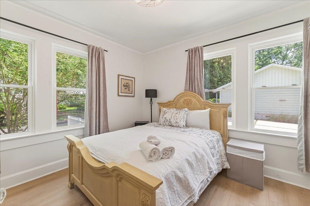2 Dedicated parking spots! Newly remodeled with the charm of 40's design. This 2 bedroom,2 bathroom is close to downtown Tallahassee,FSU,Leon High,and shopping. Wood floors,new paint,new kitchen with granite countertops and farmhouse kitchen sink,new light fixtures,huge pantry with original wood shelving,new bathrooms with vanities,new furniture throughout. Open floor plan design. Front and back porch area with new BBQ grill. Fenced yard and private assigned parking for two cars. Absolute stunner. Internet included!