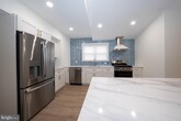 This beautiful twin in Radnor Township has been completely rehabbed. The main house has Three bedrooms 1.5 bathrooms. Plus another separate unit on top of garage with kitchen, bathroom, bedroom, family room. From the front porch, enter a hallway to a bright Living Room, Next to a Dining Room which flows to a gorgeous kitchen with an island, gas stove, dishwasher, beautiful cabinets, refrigerator, all new appliances, backsplash tiles, and quartz countertops. On the side of the kitchen, door leads to a powder room, Laundry room with new washer and dryer and mudroom and outside exit to the backyard. Second Floor: There are two large bedrooms and one amazing full bathroom with double sinks. Third floor: One large bedroom. Full basement for storage and outside exit to yard. The driveway leads to a 2 car garage and the unit on top which can be used as a studio or office. The unit has a kitchen, full bathroom, and 2 other rooms. The main house has been completely renovated. New HVAC with central air, new roof, new Bilco doors, new appliances, freshly painted. Walk to train, library , restaurants. Great location.