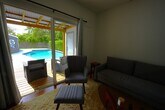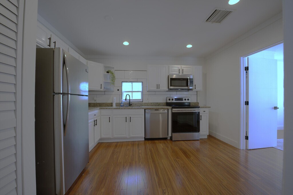 Beautifully updated furnished 3BR/2BA Mid-Century Modern home with extra office/den room (optional 4th bedroom). Features a modern kitchen with quality cabinetry,granite countertops,and stainless appliances. Both bathrooms are tastefully renovated. Enjoy a private backyard oasis with inground pool,covered patio,and detached workshop ideal for entertaining. Additional rear space with gated access offers flexibility. No HOA. Conveniently located near downtown Lake Worth Beach shopping,dining,and cafes. Rapid move-in available. MLS ID B26015421