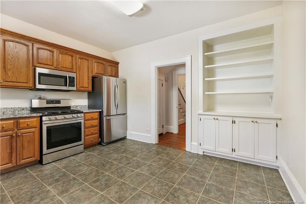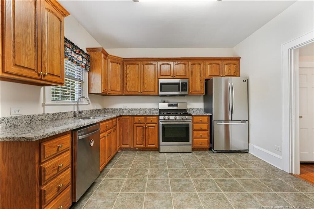 Welcome to this stunning three-bedroom, two-bath home located in the charming Laurinburg, NC. From the moment you step inside, you are greeted by beautiful hardwood floors that flow seamlessly throughout the main living areas and bedrooms. The kitchen, adorned with granite countertops is designed for both functionality and style. It features modern appliances, including a gas stove, making it a perfect space for cooking and entertaining. The heart of the home is the spacious living room, where a cozy gas fireplace serves as the focal point, ideal for family gatherings or quiet evenings. Adjacent to the living area, the sunroom offers a bright and airy space for relaxation, perfect for enjoying morning coffee or reading a book. Step outside to discover a meticulously landscaped yard, featuring a privacy fence that creates a serene oasis for outdoor activities. The fenced area is perfect for pets and children to play freely, while the patio invites you to host summer barbeques and gatherings. A handy storage shed provides practical space for gardening tools and outdoor equipment. The home's location is another highlight, directly across from a public park with a walking trail, ideal for leisurely strolls and outdoor fun. This home offers the perfect blend of comfort, style and convenience. With its inviting living spaces, beautiful outdoor areas, and proximity to a park, you won't want to miss this one! Renter will have option to buy if they choose.